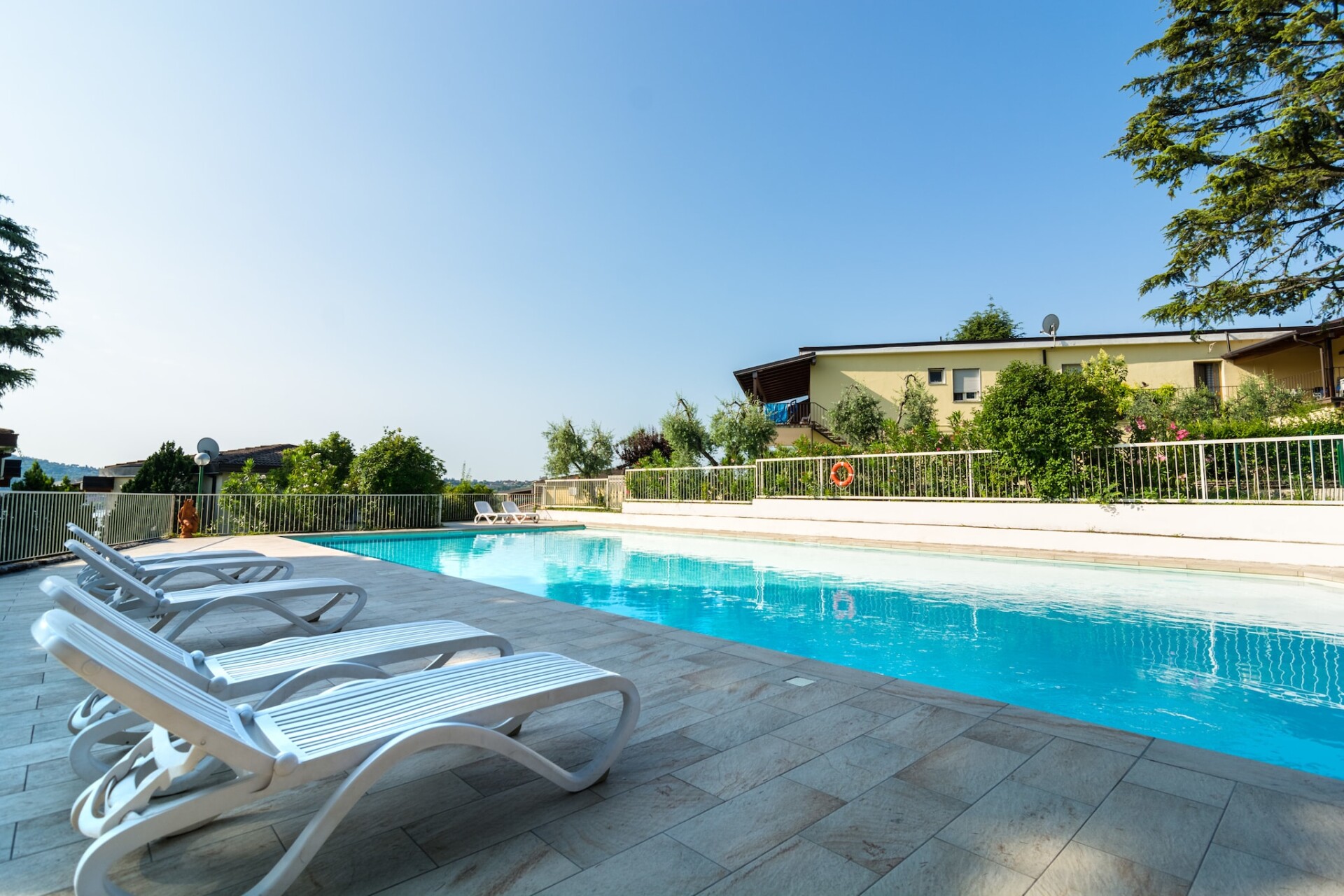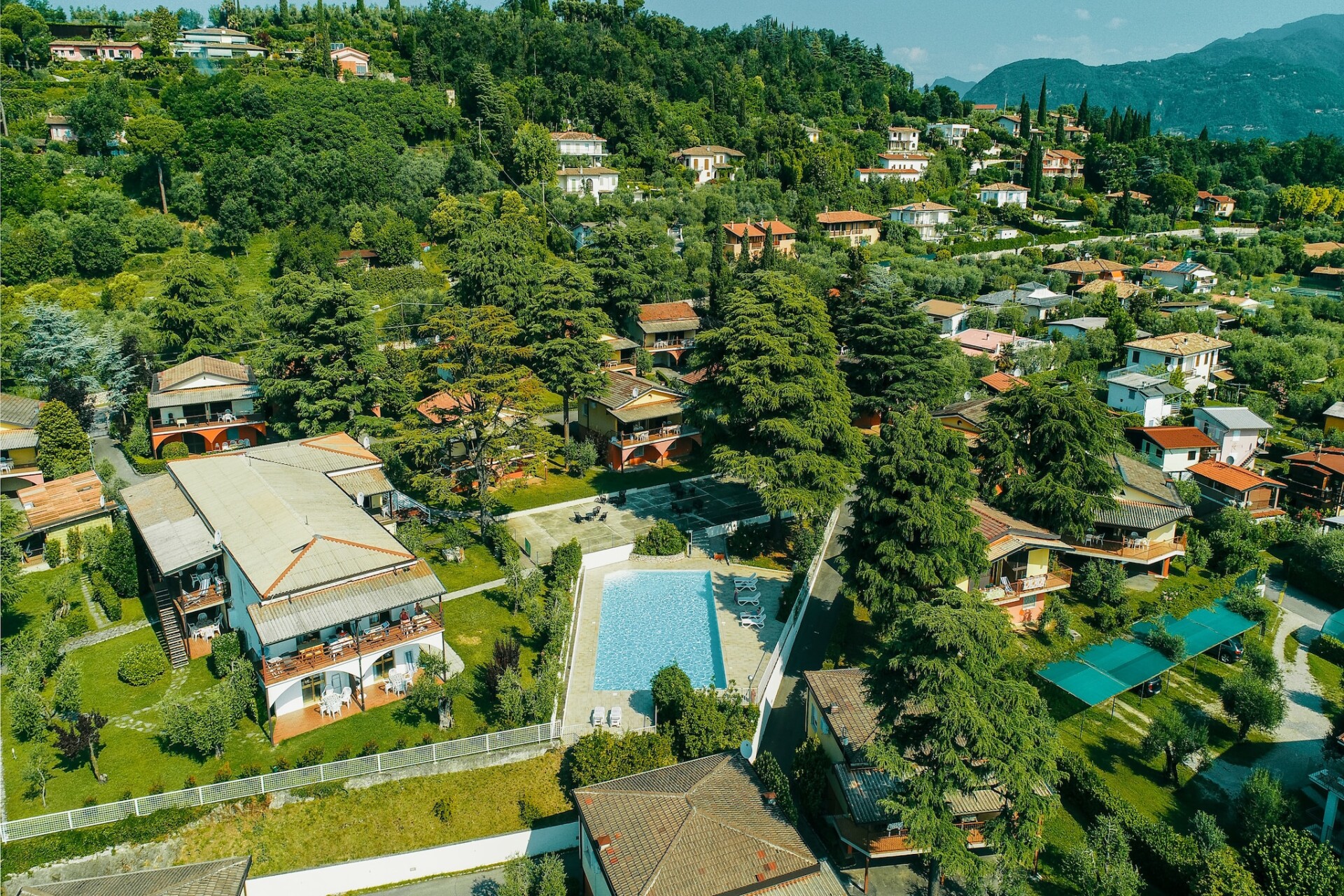 Via traptreden kom je bij het Gardameer met kiezelstrand. Langs het meer is een wandelpad dat ’s avonds verlicht is. Er zijn 3 zwembaden, een kinderspeelplaats en een sauna. Bij het meer is een aanlegsteiger voor boten, een pizzeria-restaurant, een bar en een mini-markt. Het vakantiepark is volledig afgesloten en een deel van het park is voor campinggasten. Het is mogelijk om je eigen boot mee te nemen en er is een ruime parkeerplaats voor de aanhangwagen van je boot. Op het terrein zijn een pony, kippen en konijnen aanwezig.