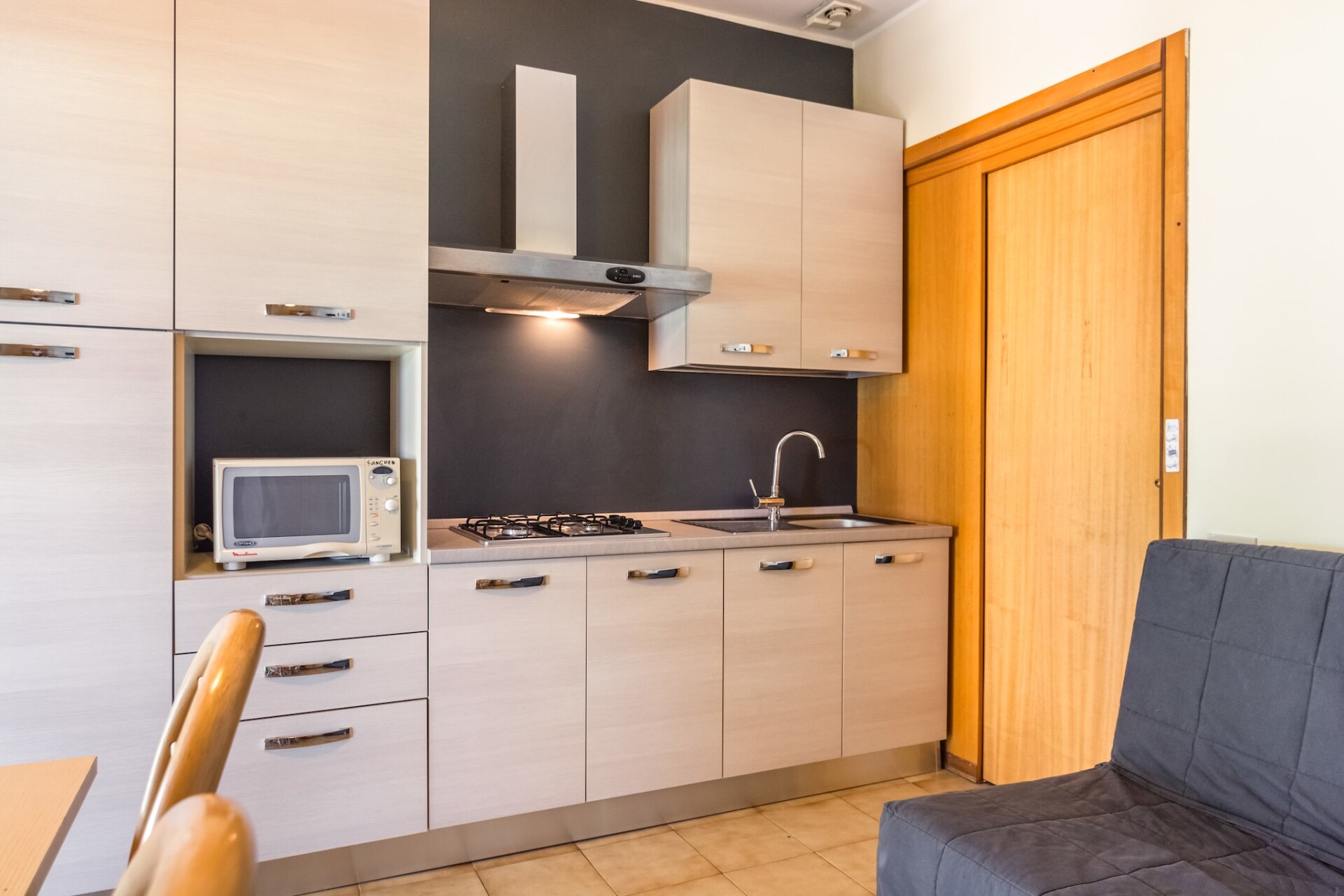 Het appartement heeft een gezellige woon-en eetkamer, een keuken en een badkamer en er is een groot terras met mooi uitzicht waar je kunt eten. De slaapkamer op de begane grond heeft een aparte ingang en is niet verbonden met de andere kamers op de begane grond. De begane grond en eerste verdieping zijn alleen via een buitentrap met elkaar verbonden. Het appartement is niet geschikt voor familie's met kleine kinderen.