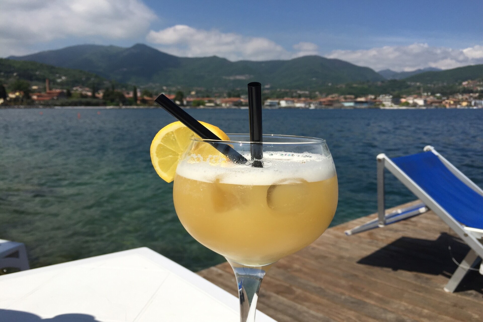 Via traptreden kom je bij het Gardameer met kiezelstrand. Langs het meer is een wandelpad van enkele kilometers dat ’s avonds verlicht is.