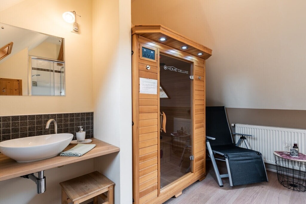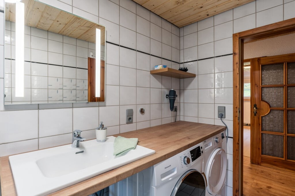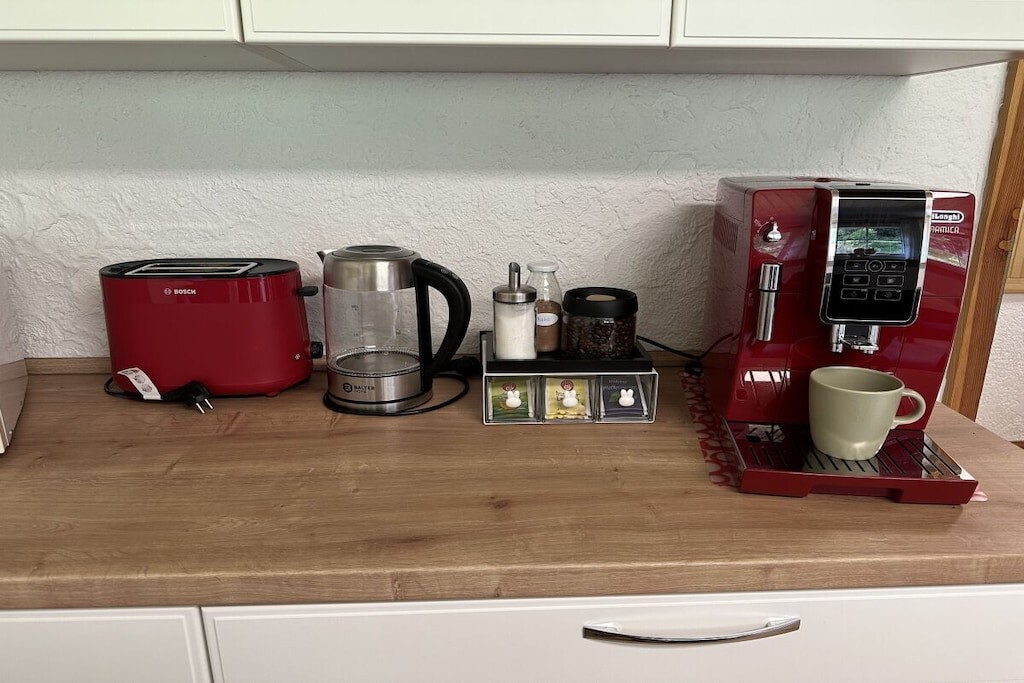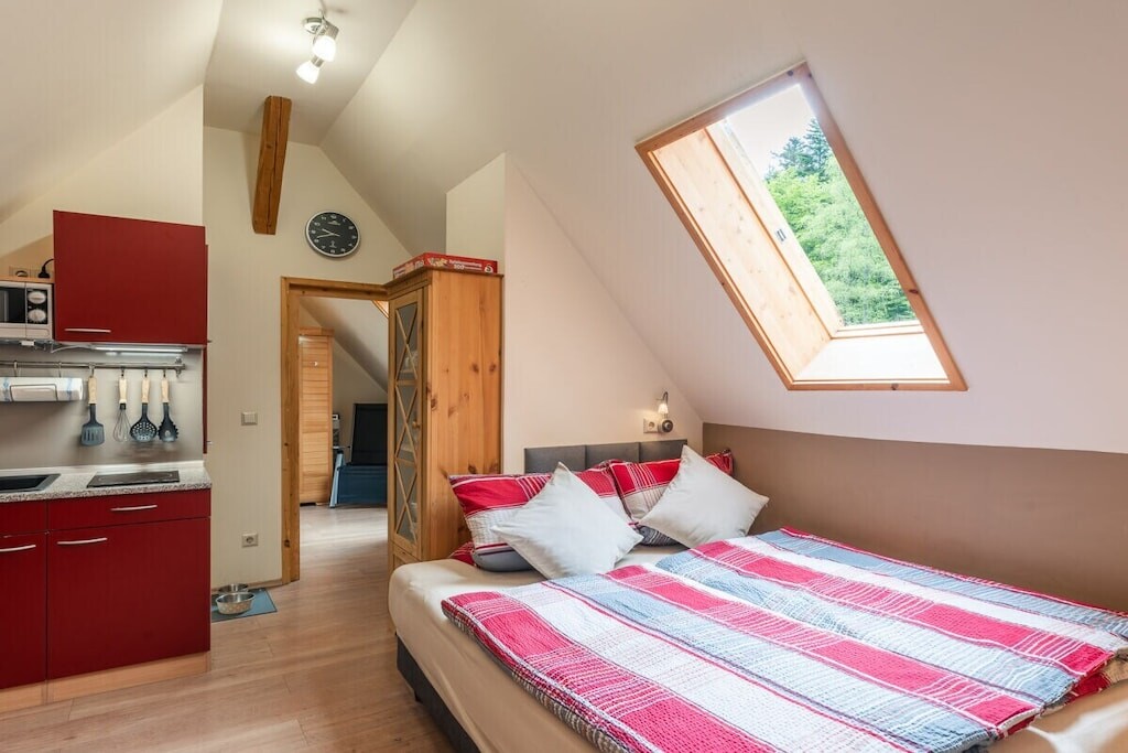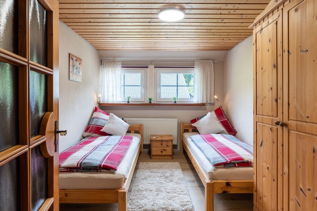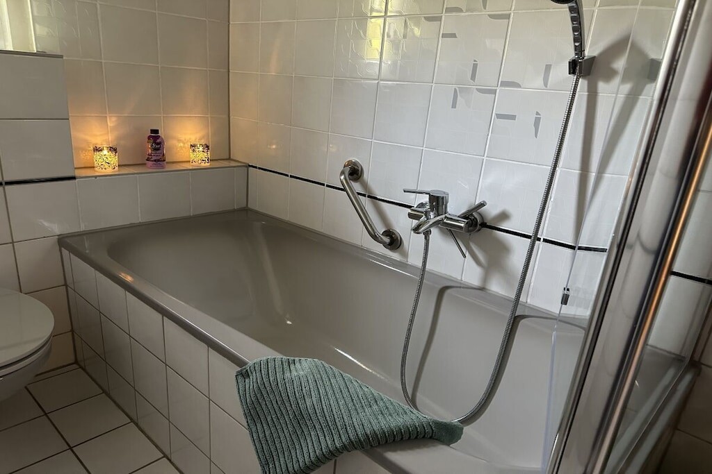 Welkom in uw exclusieve vakantiewoning in moderne Zwarte Woud-stijl met deels massief houten meubels en hotelkarakter. De gezellige woonkamer met een grote hoekbank en satelliet-tv nodigt u uit om te ontspannen en tot rust te komen. U vindt er een goed uitgeruste woon-eetkamer met moderne elektrische apparatuur voor uw dagelijkse behoeften (vaatwasser, volautomatische koffiemachine, waterkoker, koel-vriescombinatie) en een eettafel voor 6 personen. De grote slaapkamer is ingericht met een boxspringbed en een eenpersoonsbed en de kleine slaapkamer met twee eenpersoonsbedden. De badkamer met daglicht is voorzien van een wastafel, toilet, ligbad met douche, wasmachine en droger. Op zolder bevindt zich tevens een slaapkamer met een badkamer met daglicht. Kinderen tot 2 jaar en 3 honden verblijven gratis en zijn welkom