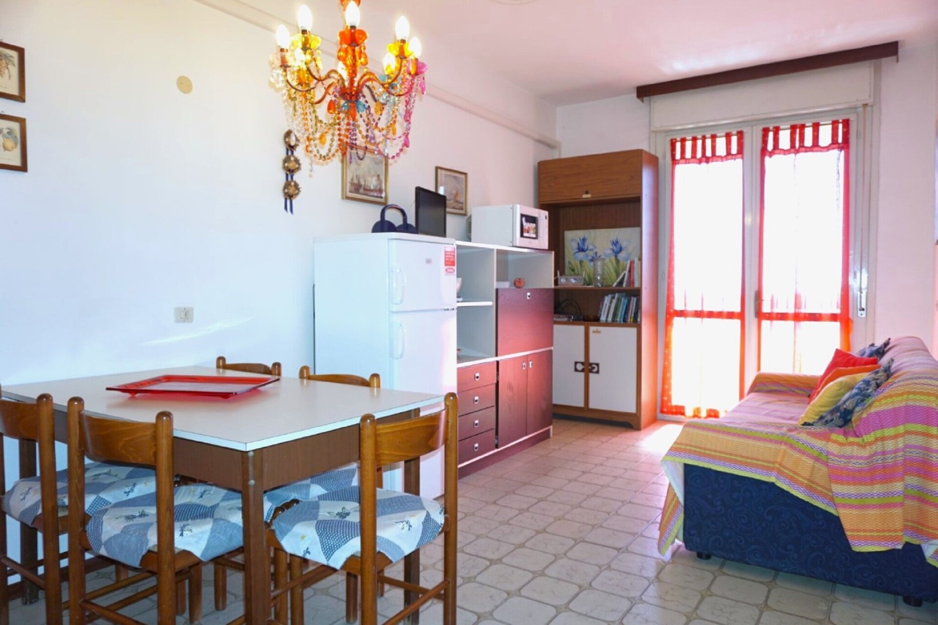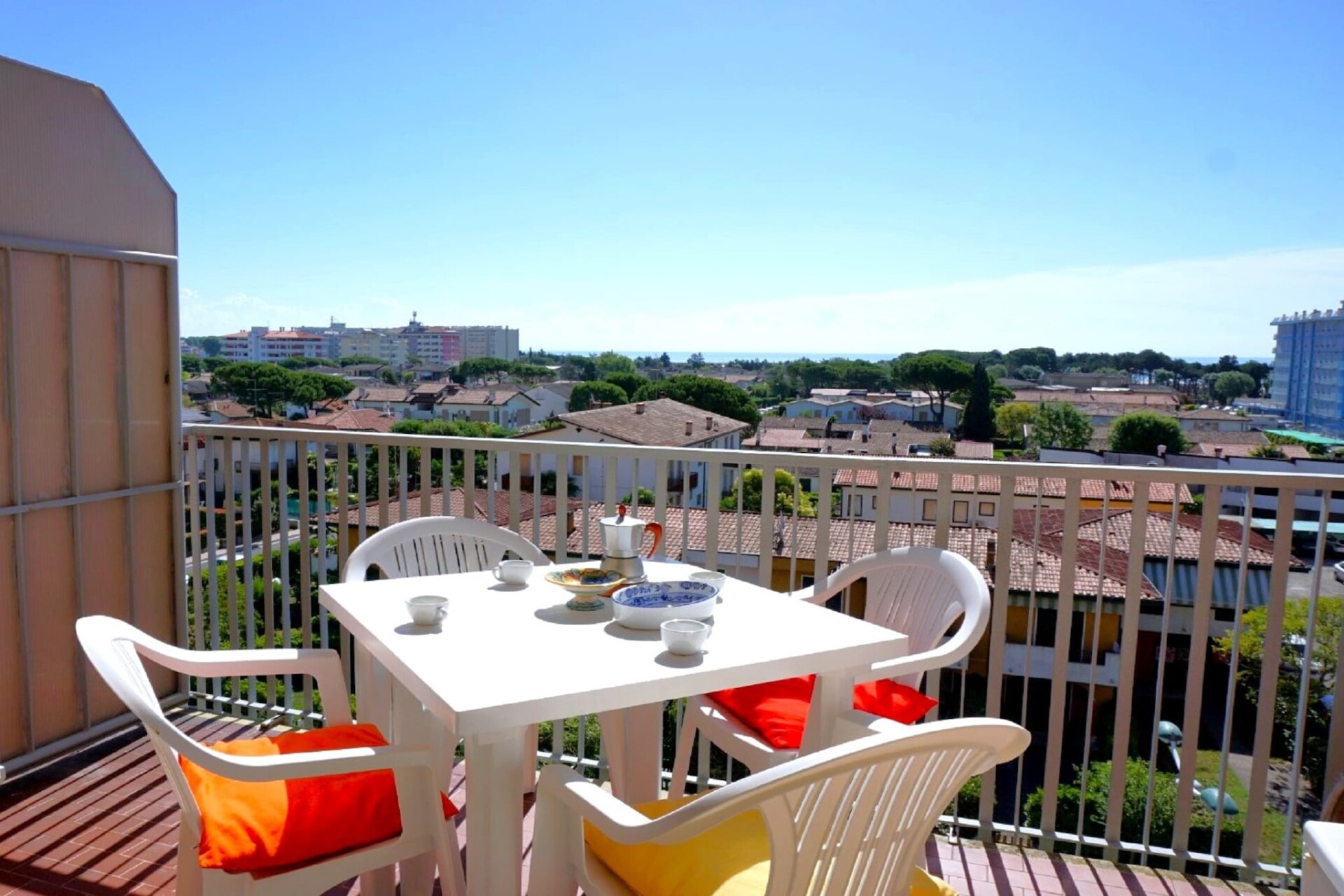 Dit huisdiervriendelijke appartement voor 5 personen ligt op slechts 500 meter van de zandstranden van Caorle en biedt een licht en gastvrij verblijf op de 5e verdieping. De comfortabele woonkamer is voorzien van een tweepersoonsslaapbank, een tv, een eettafel en een zithoek, ideaal om te ontspannen na een dag aan zee. De open keuken is volledig uitgerust met een kookplaat, afzuigkap, magnetron, koel-/vriescombinatie en wastafel, ideaal om thuis maaltijden te bereiden.