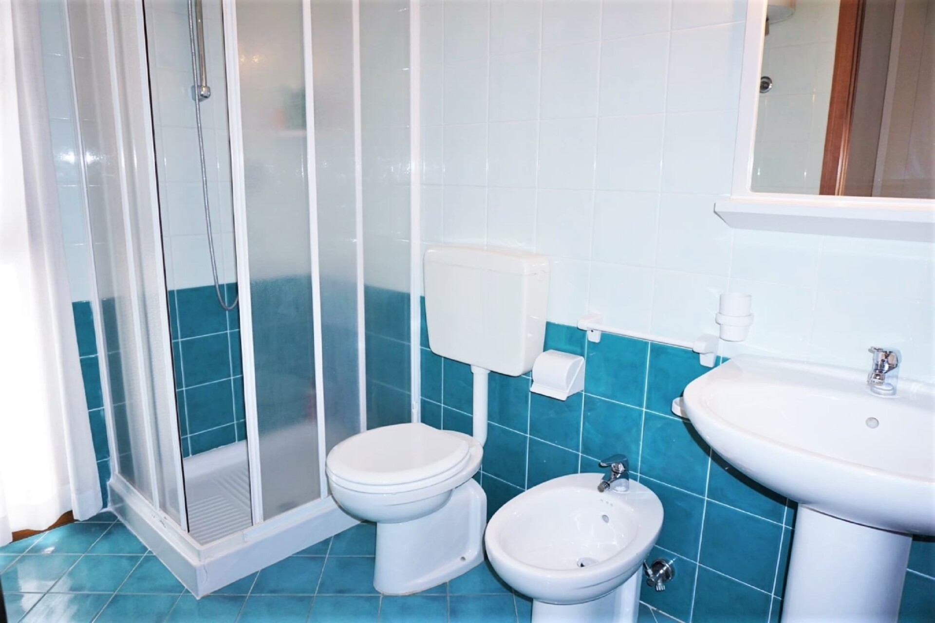 Als u naar buiten stapt, heeft u toegang tot het gedeelde zwembad, een belangrijke voorziening van het complex waar u kunt afkoelen, ontspannen aan het zwembad of genieten van de buitenlucht op warme Italiaanse middagen. Ligstoelen en schaduwrijke plekjes omringen het zwembad, wat bijdraagt aan de resortachtige sfeer.