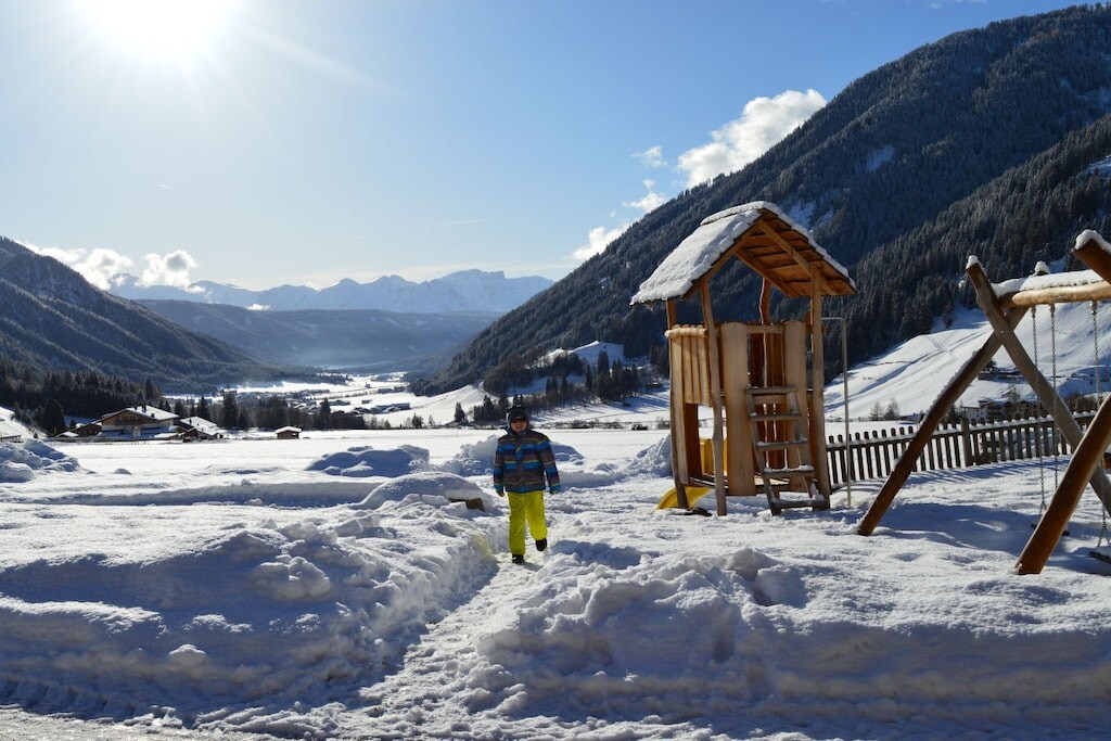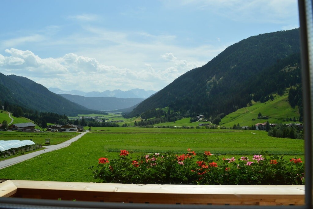 Onze boerderij ligt in St. Magdalena in het prachtige Casiestal in Zuid-Tirol, op 1400 meter boven zeeniveau, op een zonnige locatie met een prachtig uitzicht op het Casiestal, de omliggende alpenweiden en de Dolomieten.