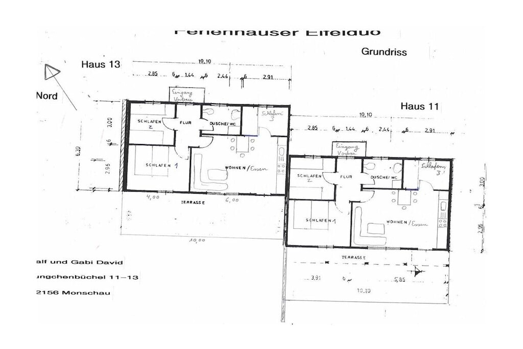 De vakantiehuizen Eifelduo 11 en 13 zijn elk circa 60 vierkante meter groot en bieden een fantastisch uitzicht over het Eifellandschap. Ze beschikken over drie slaapkamers voor vijf personen en een kinderbedje/kinderstoel kan op aanvraag gratis worden verstrekt. De huizen liggen direct naast elkaar, waardoor maximaal tien personen beide huizen tegelijk kunnen huren door de bestaande privacyomheining (10 meter lang) via een verbindingsdeur te openen.