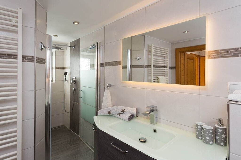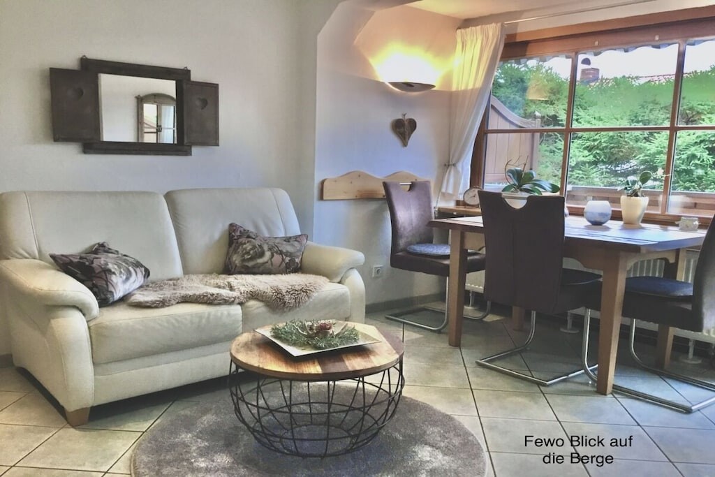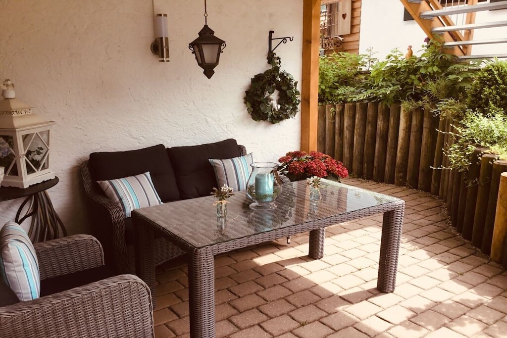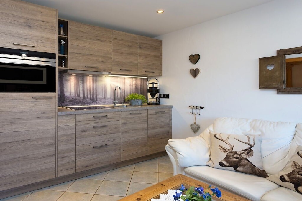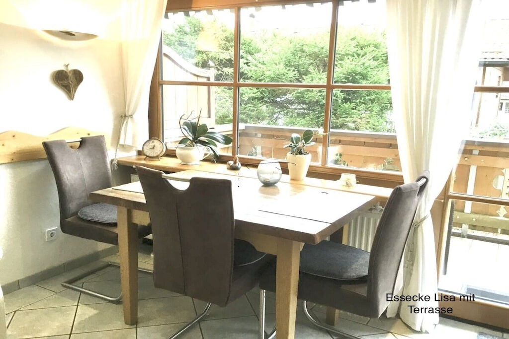 Onze ruime tuin biedt volop ruimte om te zonnen en te ontspannen. Er is een aparte ruimte beschikbaar voor fietsen en ski's. Parkeren is mogelijk in een overdekte carport. Het zwembad Wellenberg en de Laberbergbahn liggen op korte loopafstand.