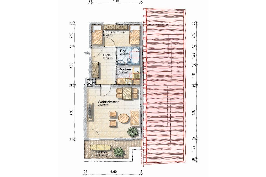 Ons vakantieappartement met één slaapkamer is gezellig en modern, voorzien van alle moderne gemakken (wifi, flatscreen-tv, dvd-speler, uitstekende matrassen, hoogwaardige keuken), een fantastisch balkon met adembenemend uitzicht op de bergen en een perfecte locatie. Naast de slaapkamer is er een slaapbank met matrastopper in de comfortabele woonkamer voor een derde en vierde persoon.