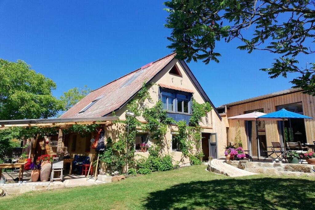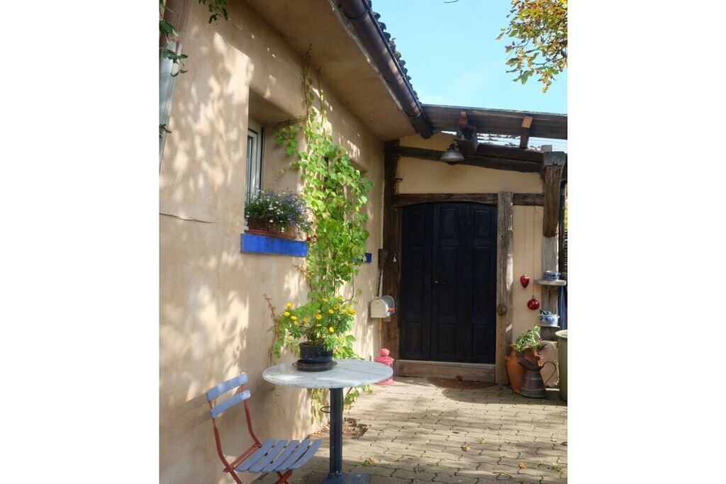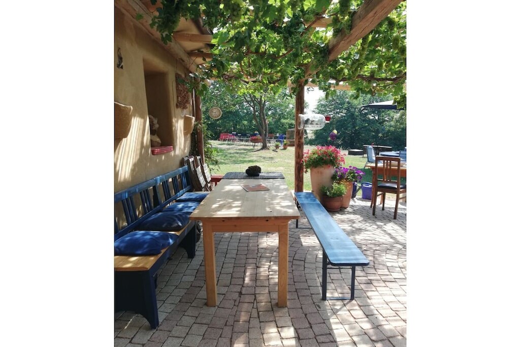 Het gastenverblijf heeft twee terrassen, onder elkaar. Eén daarvan is overdekt.