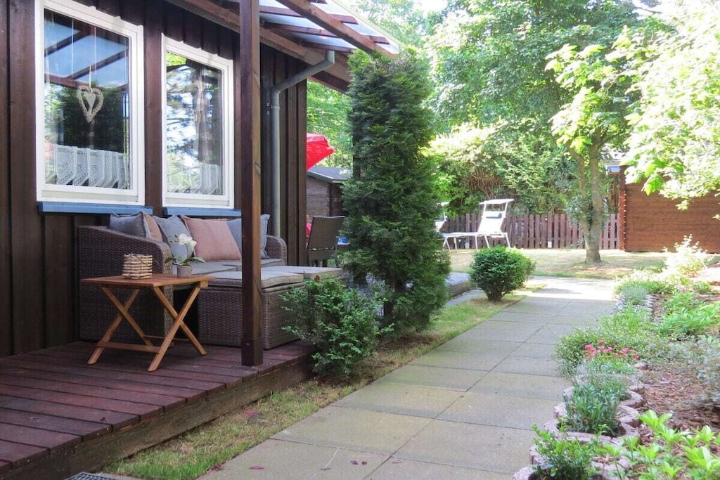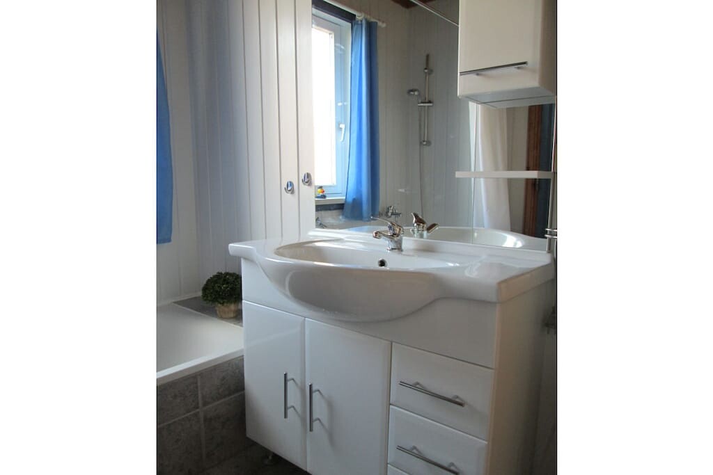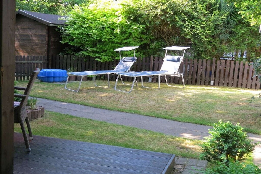 Een flatscreen-tv is ook nieuw. Spelletjes, boeken en een blu-rayspeler zijn aanwezig. Het vakantiehuis beschikt over een terras met tuinmeubilair. Het terrein is omheind. Er is een nieuw tuinhuisje voor fietsen.