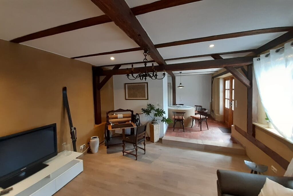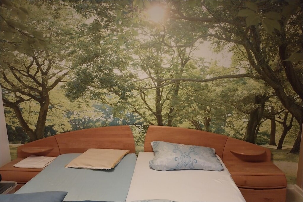 "Moderniteit ontmoet natuur." Of u nu comfortabele accommodatie zoekt voor werk of een ontspannen vakantie, uw bijzondere vakantiehuis is drempelvrij en beschikt over een ruime woonkamer, twee slaapkamers, een badkamer, een keuken, een zonneterras, een barbecue en een gazon om te zonnebaden.