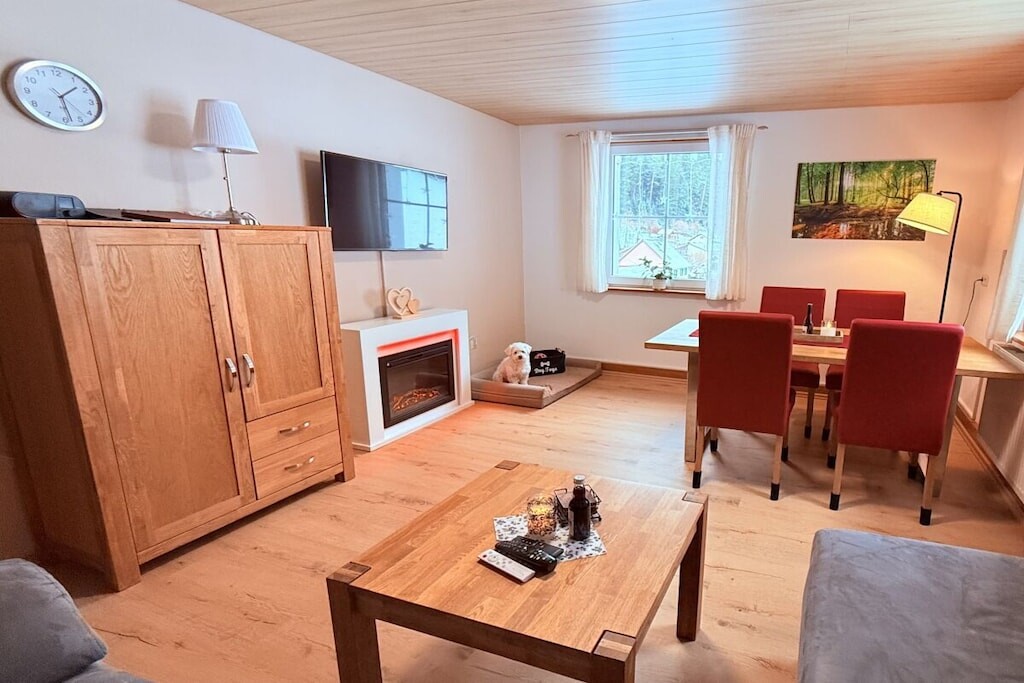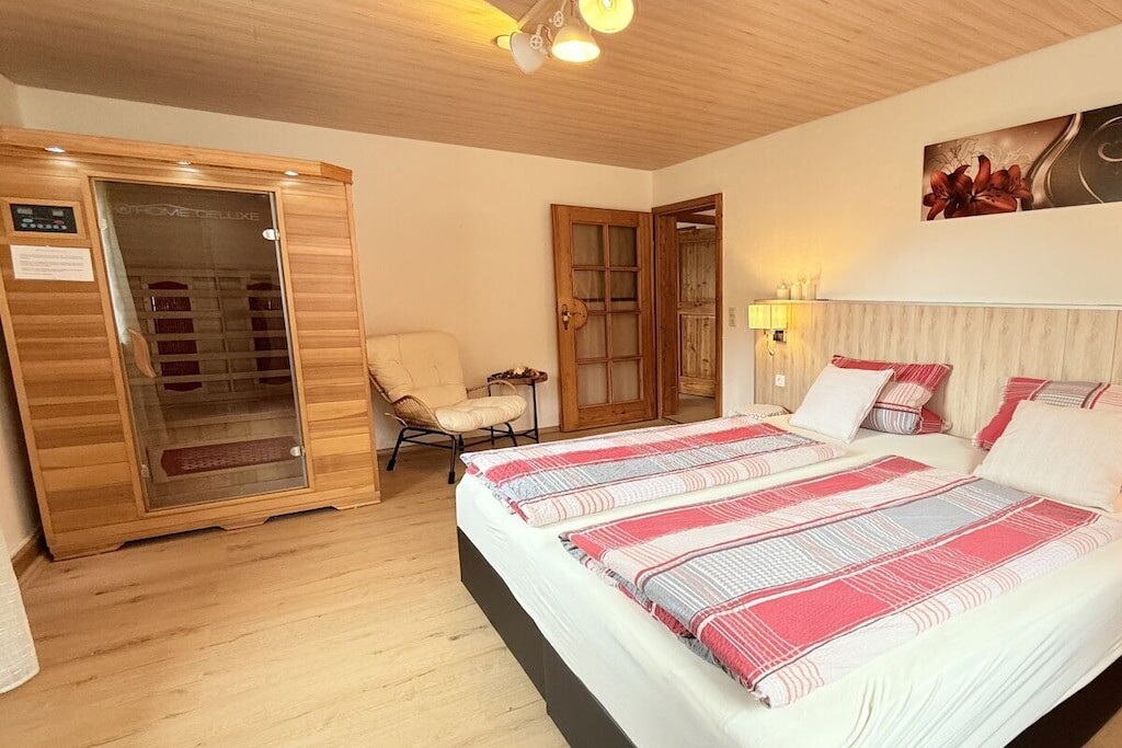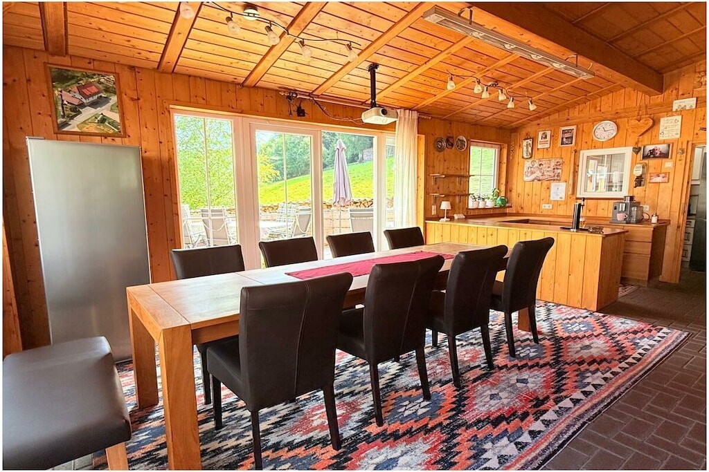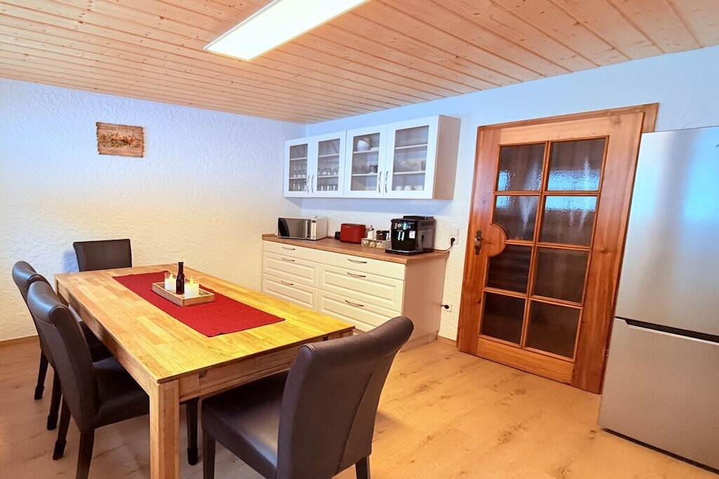 Een gezellig en hoogwaardig vakantiehuis wacht op u, verdeeld over drie aparte appartementen op drie verdiepingen, ideaal voor groepen en gezinnen met honden. De woonkamer beschikt over een comfortabele zithoek en een elektrische open haard met sfeerverlichting, perfect voor knusse avonden. De grote, goed uitgeruste woonkeuken is ideaal om samen te koken en spelletjes te spelen. Geniet met uw vrienden van de frisse Zwarte Woud-lucht in de zonnige tuin, waar u kunt barbecueën en ontspannen in de hangstoel. Vanaf mei heeft u ook toegang tot onze rustieke serre, met een grote eettafel, een bijkeuken, toegang tot het terras en een voortuin met een eethoek en een gasbarbecue.