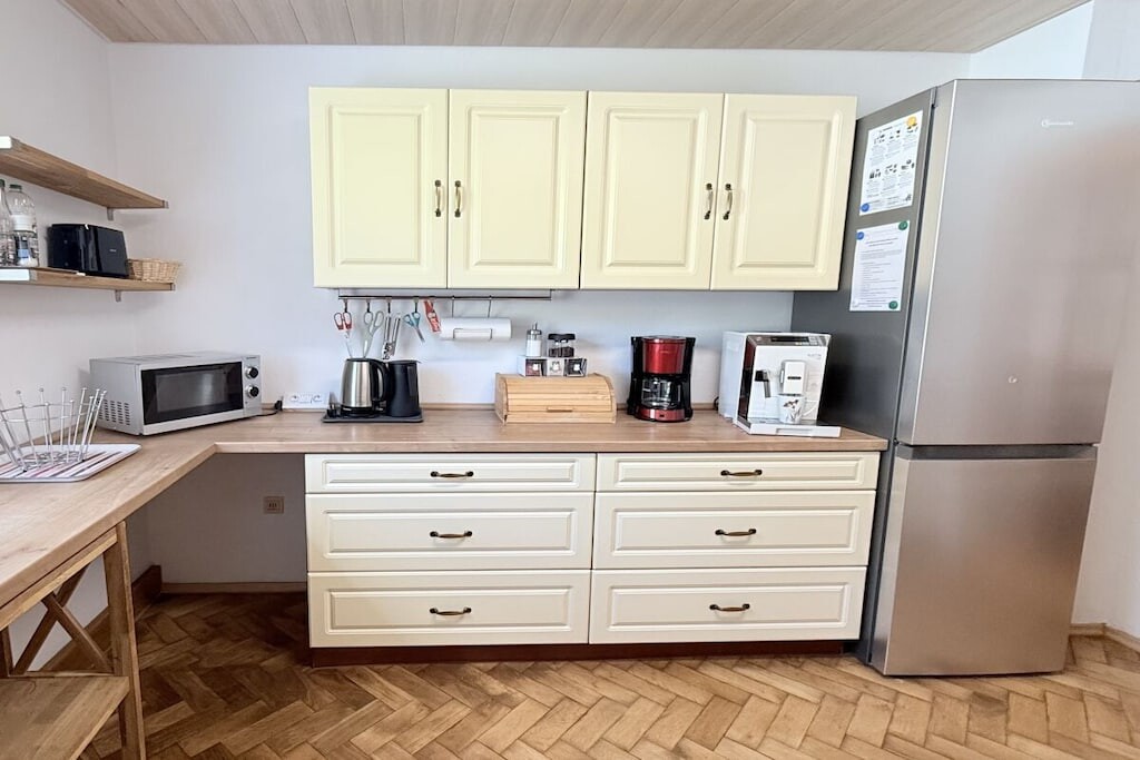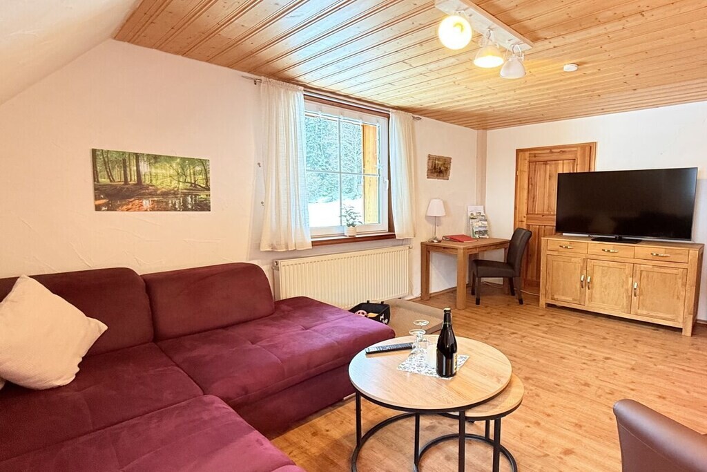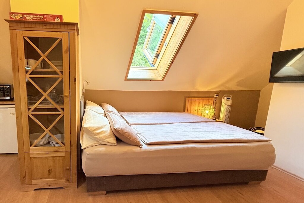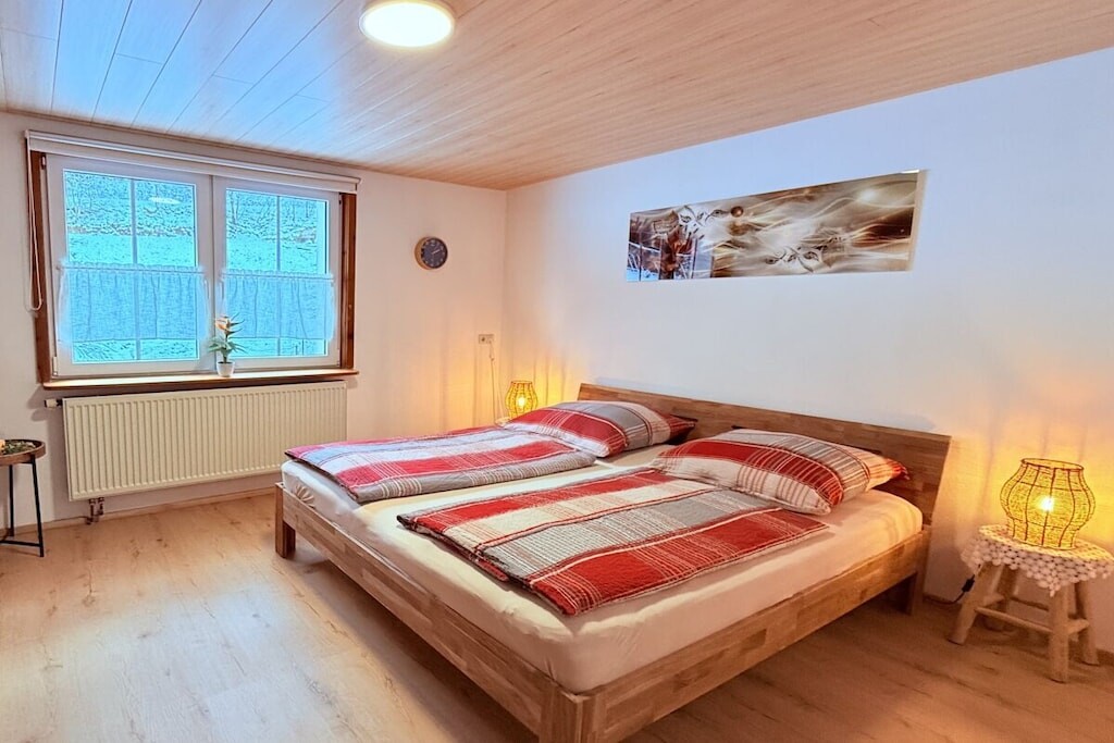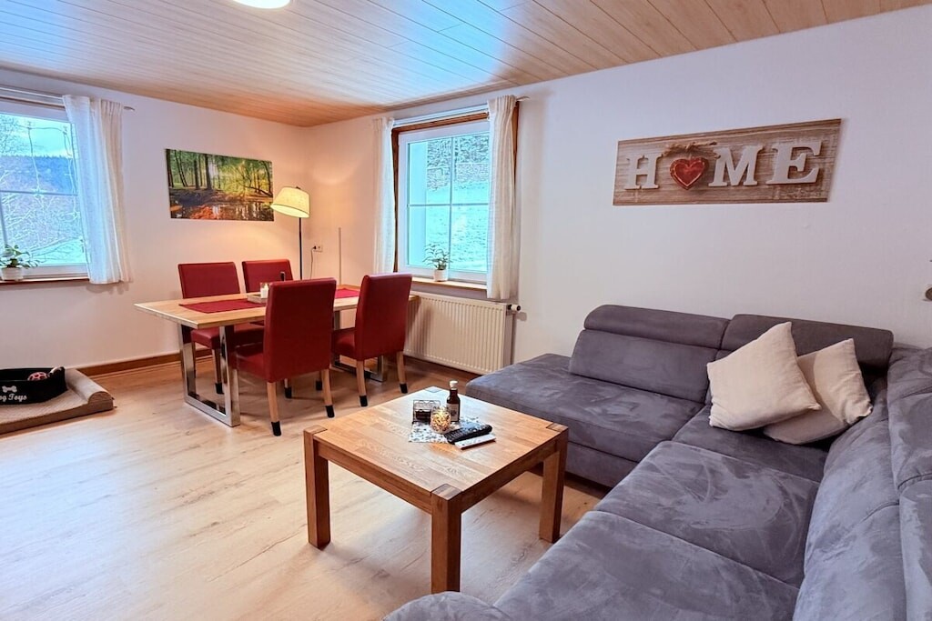 Een gezellig en hoogwaardig vakantiehuis wacht op u, verdeeld over drie aparte appartementen op drie verdiepingen, ideaal voor groepen en gezinnen met honden. De woonkamer beschikt over een comfortabele zithoek en een elektrische open haard met sfeerverlichting, perfect voor knusse avonden. De grote, goed uitgeruste woonkeuken is ideaal om samen te koken en spelletjes te spelen. Geniet met uw vrienden van de frisse Zwarte Woud-lucht in de zonnige tuin, waar u kunt barbecueën en ontspannen in de hangstoel. Vanaf mei heeft u ook toegang tot onze rustieke serre, met een grote eettafel, een bijkeuken, toegang tot het terras en een voortuin met een eethoek en een gasbarbecue.
