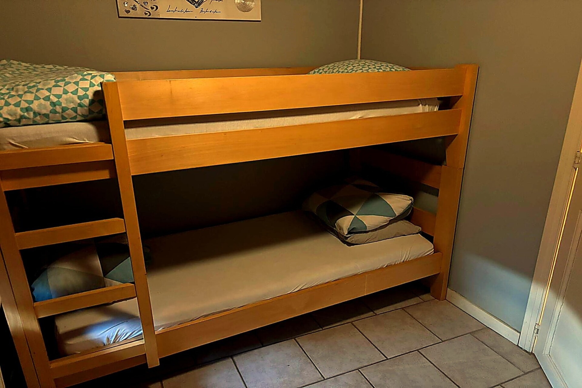 Binnen is het huis licht, modern en praktisch. De begane grond beschikt over een gezellige woonkamer met tv, perfect om 's avonds samen te ontspannen. De volledig uitgeruste keuken maakt koken gemakkelijk en plezierig, of u nu een snelle lunch of een familiediner bereidt, en een apart toilet zorgt voor extra gemak. Boven zorgen drie comfortabele slaapkamers voor een goede nachtrust: twee kamers met tweepersoonsbedden en een gezinsvriendelijke slaapkamer met een stapelbed. De badkamer is voorzien van een douche en een dubbele wastafel, terwijl een extra toilet ervoor zorgt dat de ochtenden stressvrij verlopen voor grotere groepen.