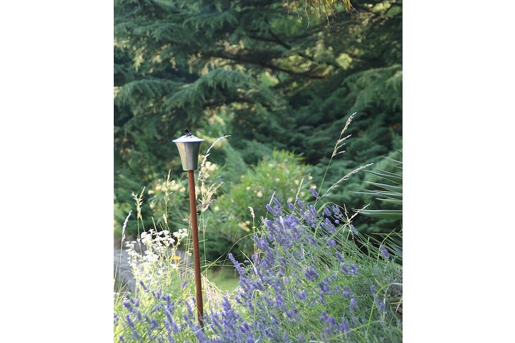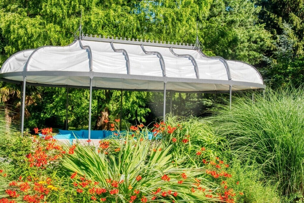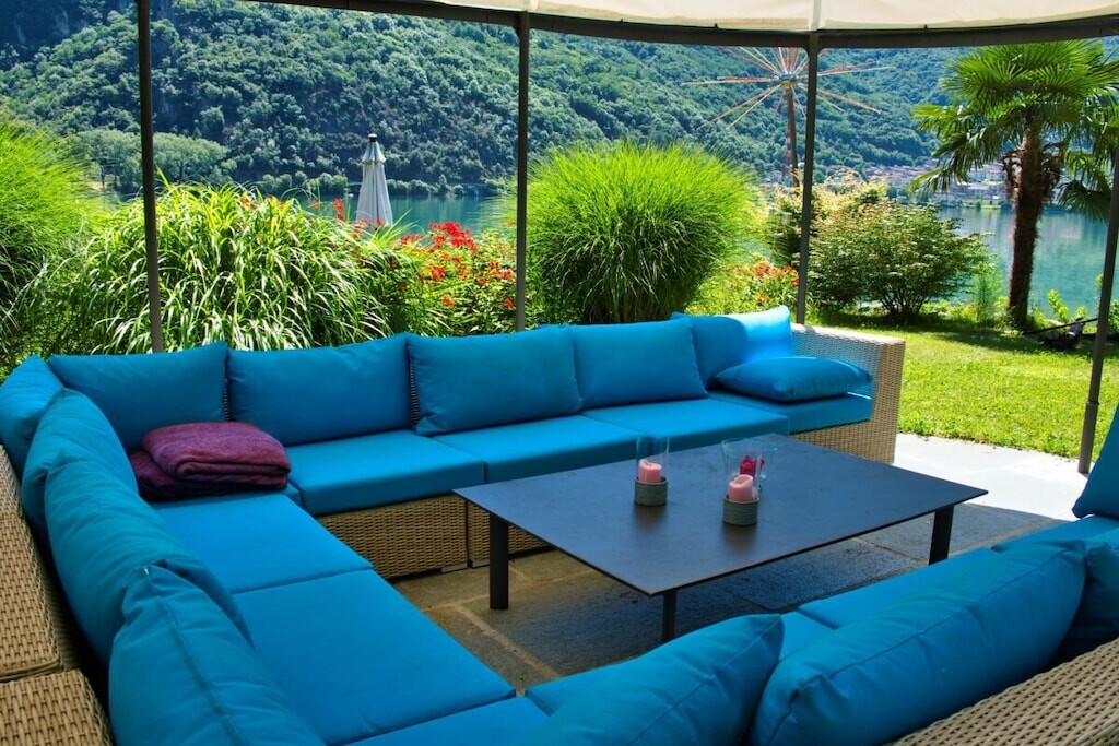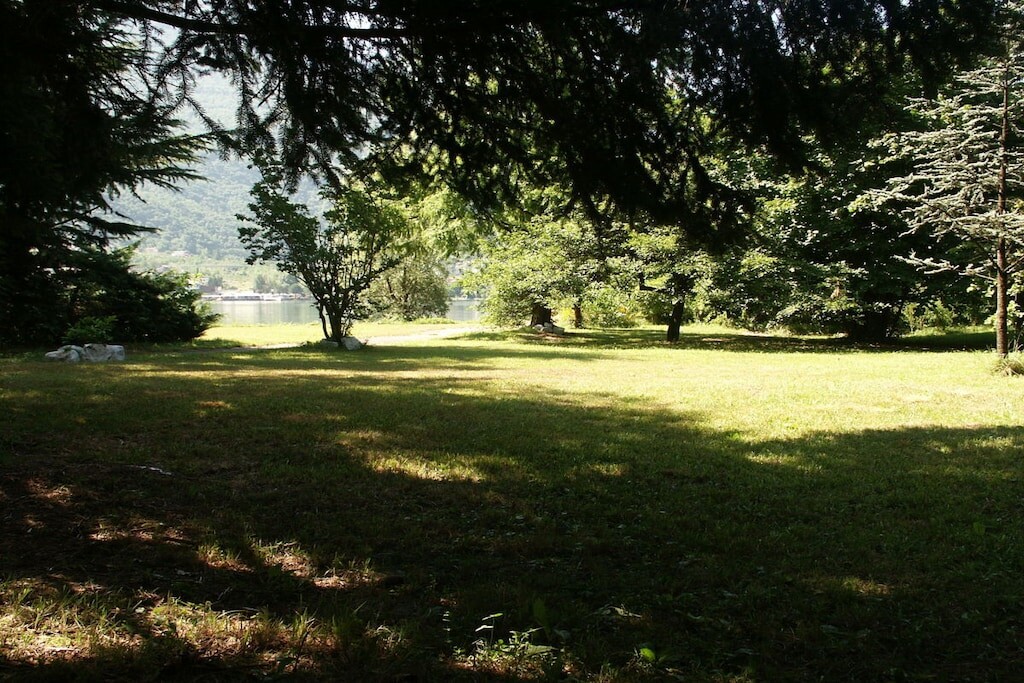 Het is afgeschermd van inkijk en biedt vele bomen waaronder u op warme zomerdagen een schaduwrijk plekje kunt vinden met uitzicht op het meer of kunt ontspannen in de hangmatten.