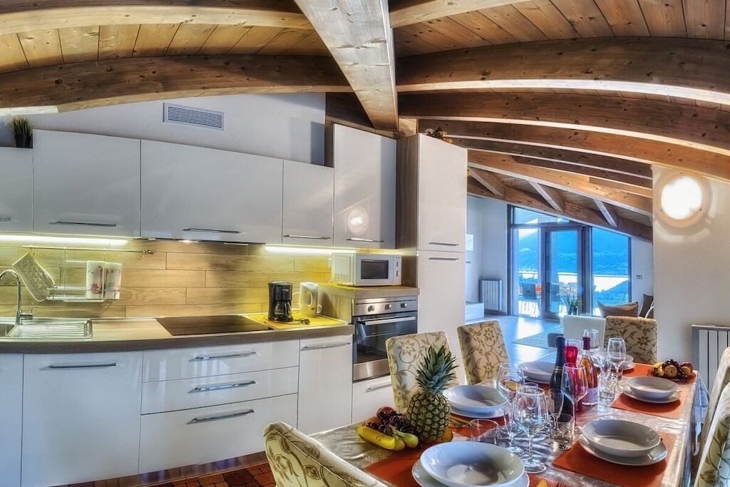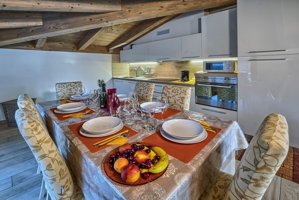 Het vakantieappartement is prachtig ingericht en bestaat uit een woonkamer met bank, nieuwe Smart TV SAT 65" voor Duitse en Italiaanse programma's, gratis WiFi, keuken met inductiekookplaat, vaatwasser, magnetron, filterkoffiezetapparaat, waterkoker, etc.