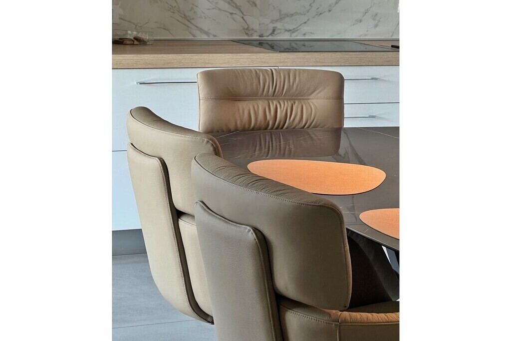 De inrichting is verrassend stijlvol en van zeer hoge kwaliteit. Leer, natuurlijk hout en glas zijn de dominante materialen.