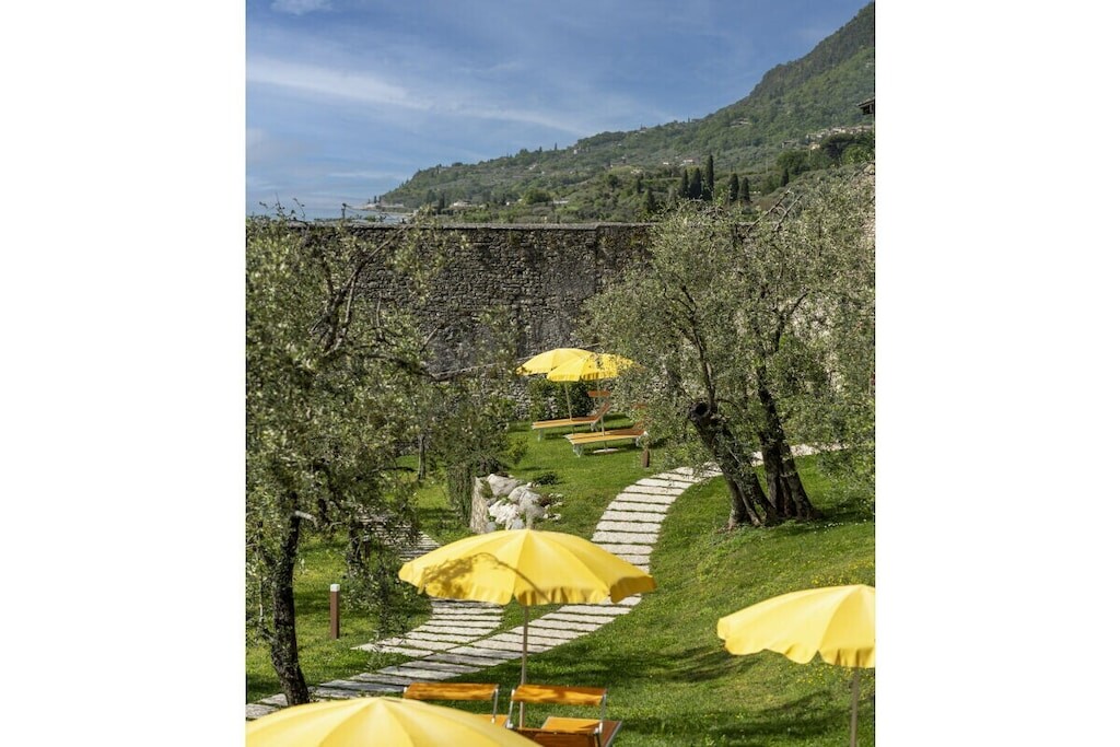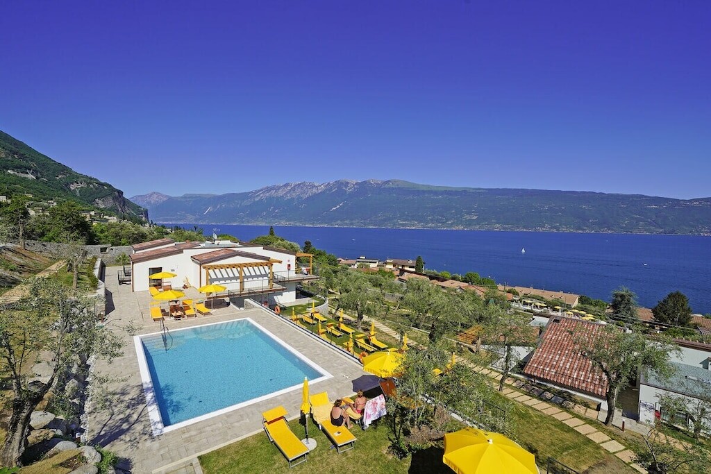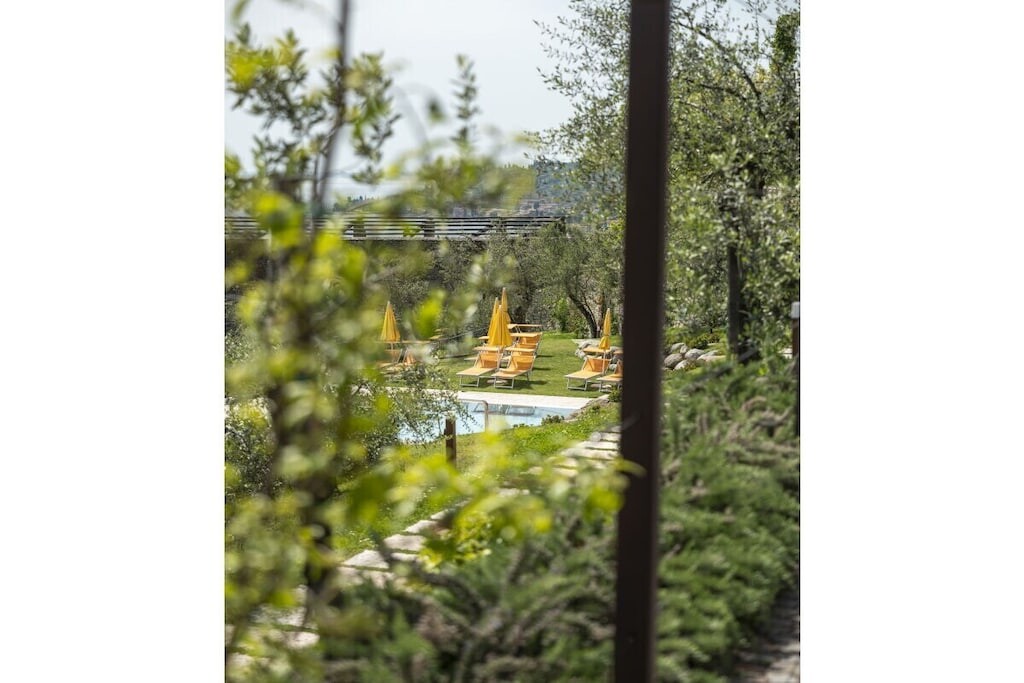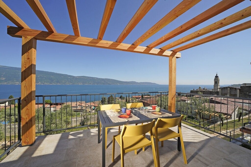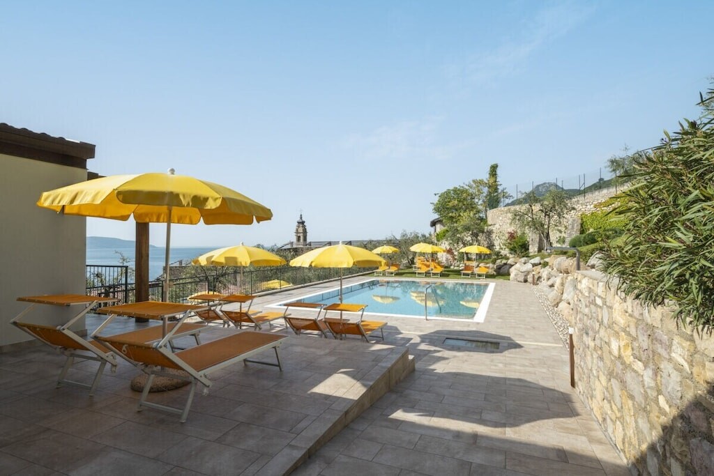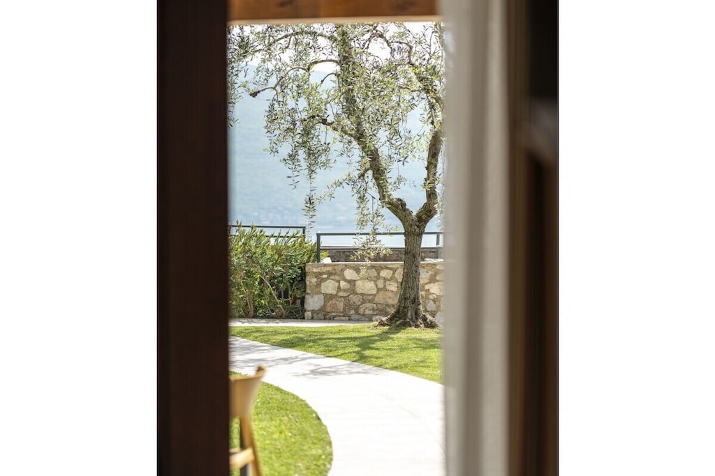 Modern appartement op een rustige locatie, omgeven door olijfgaarden, op slechts 300 meter van het strand en het centrum. Met adembenemend uitzicht op het meer, zwembad, jacuzzi en parkeergelegenheid. Harmonieus ingepast in de natuur, combineert het Italiaanse charme met modern comfort.