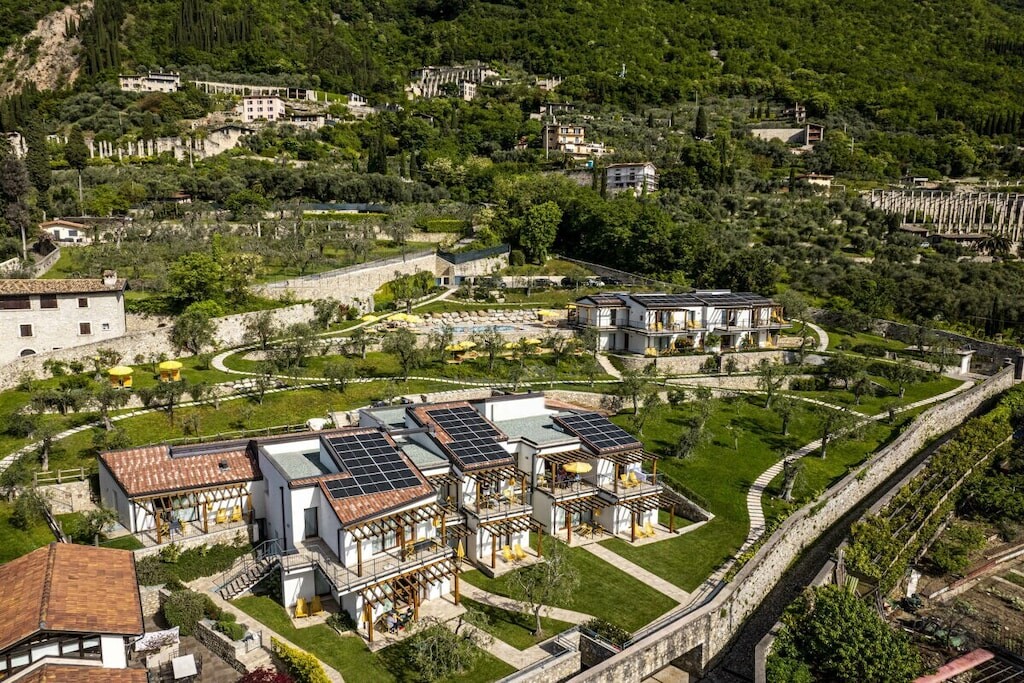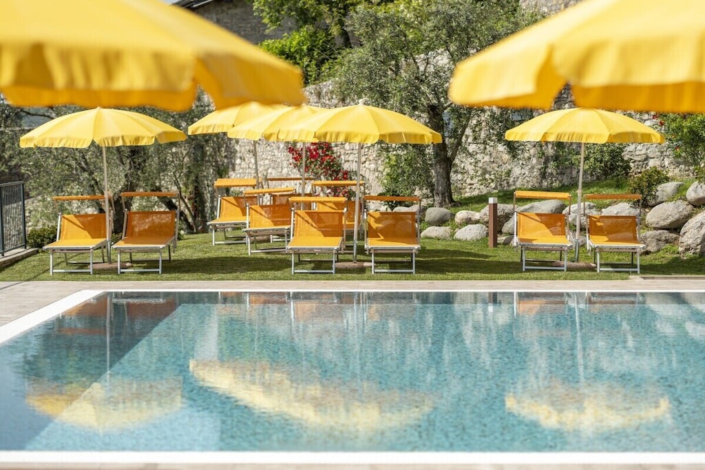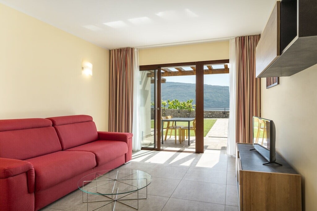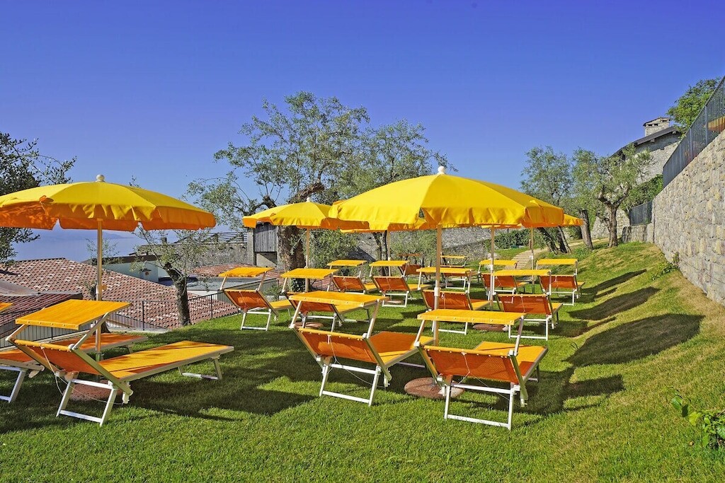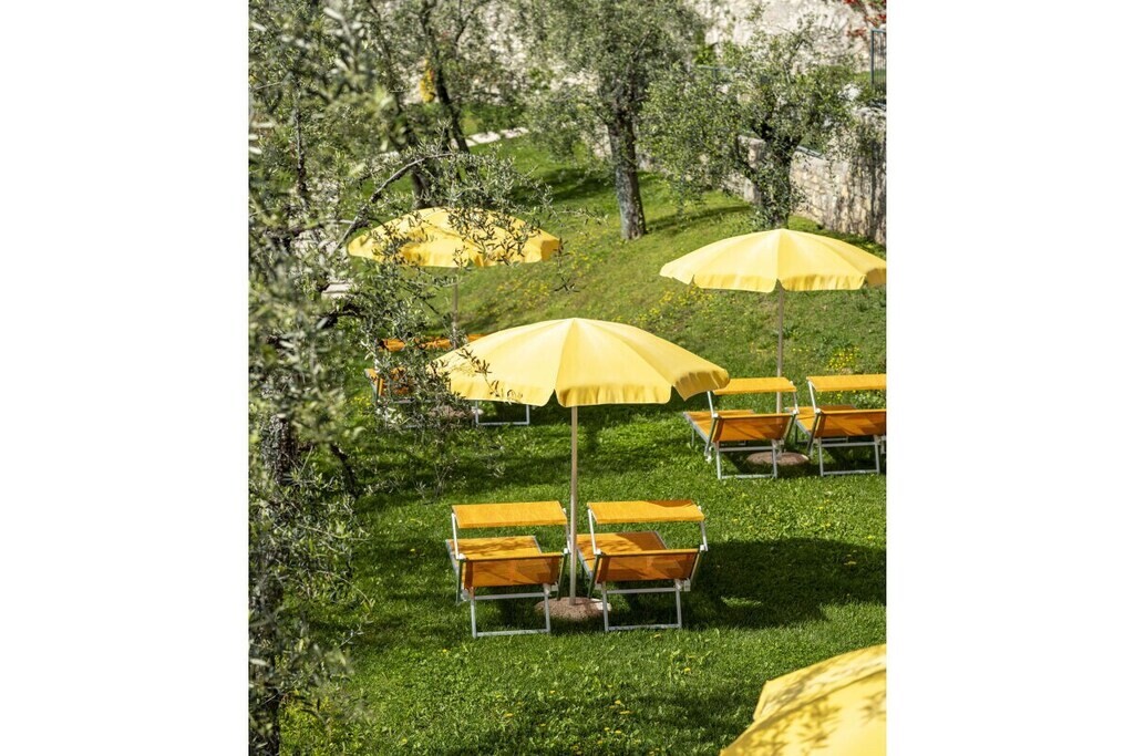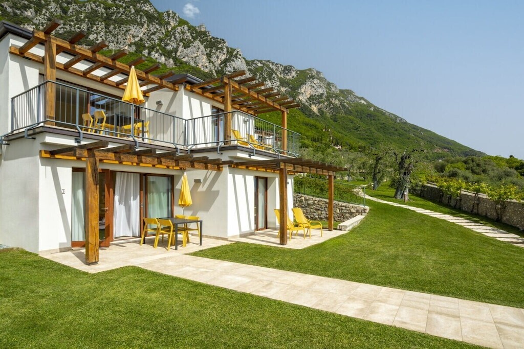 Modern appartement op een rustige locatie, omgeven door olijfgaarden, op slechts 300 meter van het strand en het centrum. Met adembenemend uitzicht op het meer, zwembad, jacuzzi en parkeergelegenheid. Harmonieus ingepast in de natuur, combineert het Italiaanse charme met modern comfort.