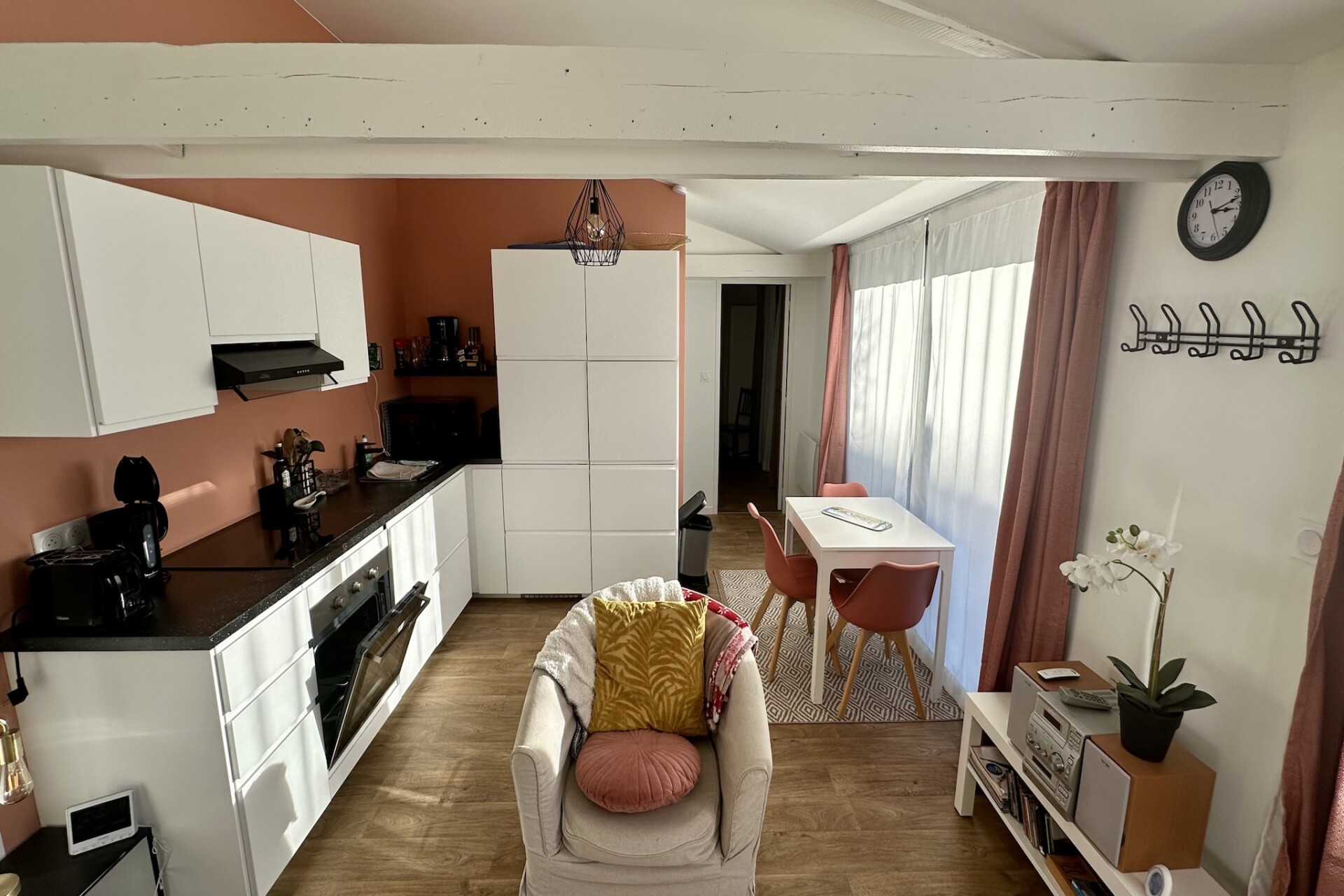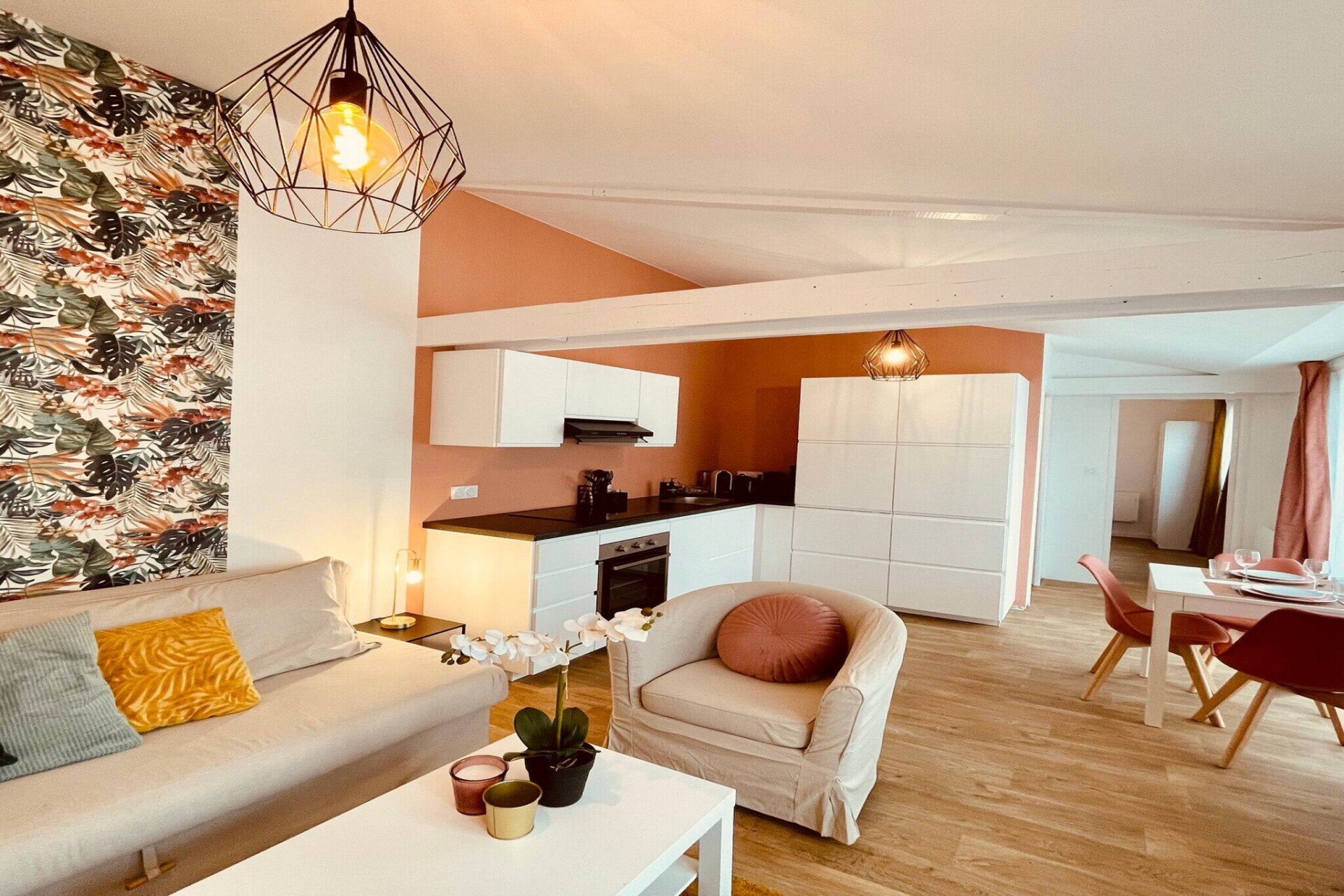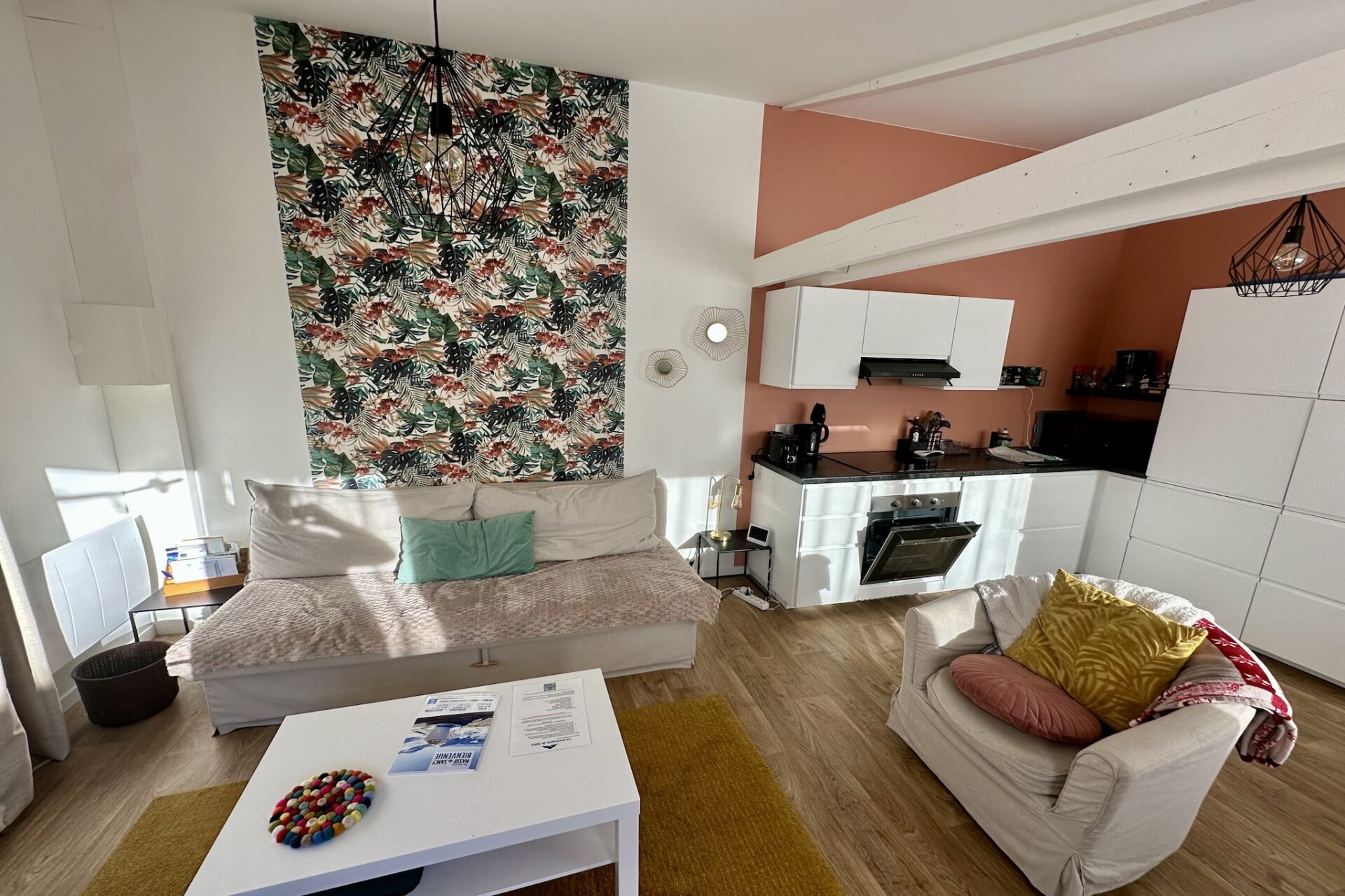 Het appartement beschikt over een aparte slaapkamer met een tweepersoonsbed en een extra slaapbank in de woonkamer voor flexibele slaapmogelijkheden. De open woonkamer biedt een ontspannen zitruimte met een televisie om na een dag buiten te ontspannen. De volledig uitgeruste keuken is voorzien van een koelkast, inductiekookplaat, mini-oven, magnetron, vaatwasser, koffiezetapparaat, waterkoker en broodrooster, zodat gasten tijdens hun verblijf gemakkelijk maaltijden kunnen bereiden. Er is ook een raclette-apparaat beschikbaar voor gezamenlijke eetervaringen, terwijl wifi zorgt voor connectiviteit bij het plannen van dagelijkse activiteiten. De badkamer biedt praktische voorzieningen voor dagelijks gebruik na ski- of wandeltochten.