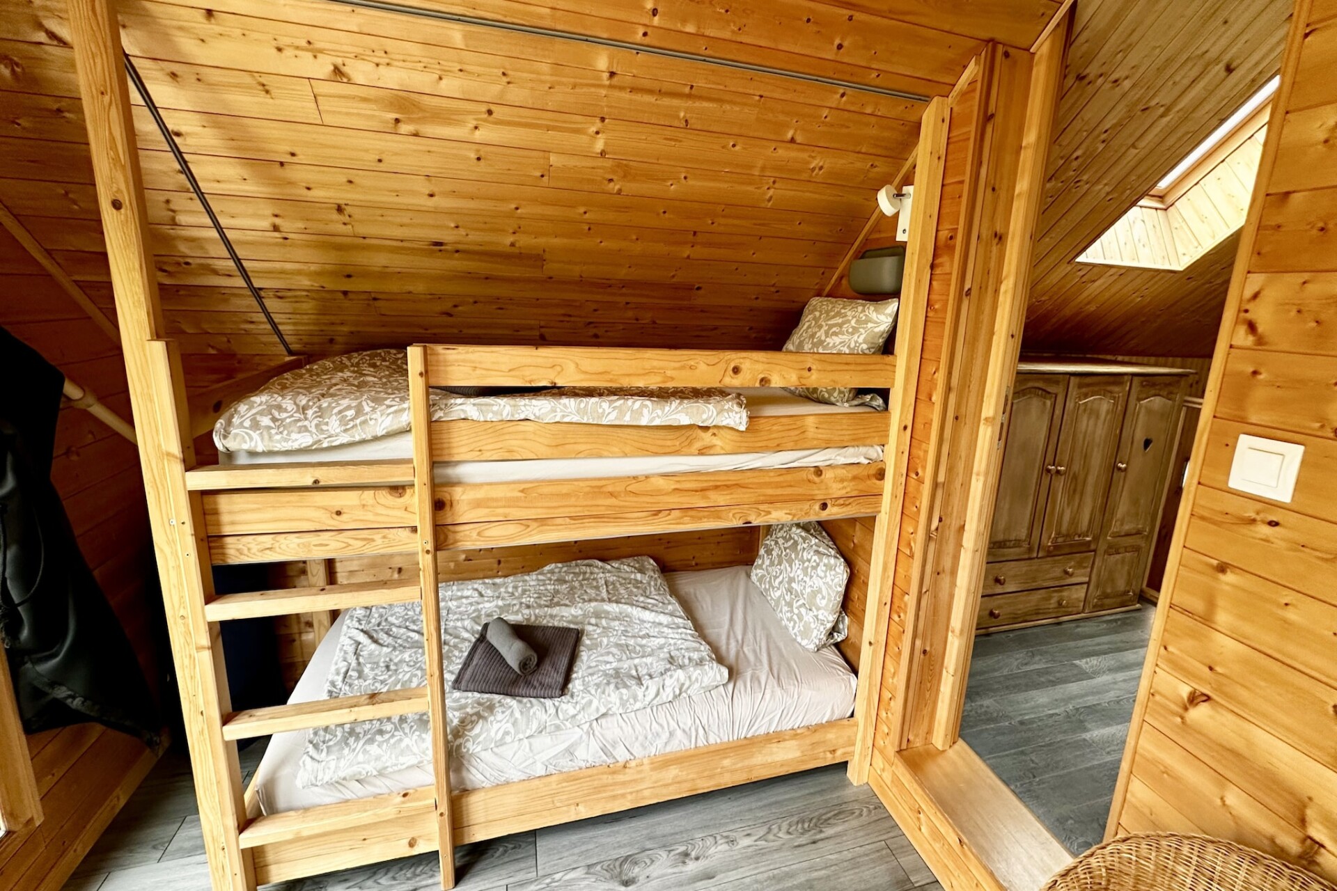 Het chalet is verdeeld over twee verdiepingen en beschikt over vier goed gescheiden slaapkamers met een mix van tweepersoons-, eenpersoons- en stapelbedden, zodat u flexibel kunt slapen met een groep. De grote woonkamer heeft een zithoek met een televisie en een eethoek waar u na een dag in de buitenlucht samen kunt eten. De volledig uitgeruste open keuken is voorzien van een koelkast, oven, magnetron, kookplaat, vaatwasser en koffiezetapparaat, zodat u tijdens uw verblijf gemakkelijk maaltijden kunt bereiden. Een speciale wasruimte biedt extra praktische voordelen voor langere verblijven, wifi zorgt voor connectiviteit en verwarming garandeert comfort tijdens de koudere maanden. Twee badkamers met douchevoorzieningen zorgen voor dagelijks gemak voor grotere groepen.
