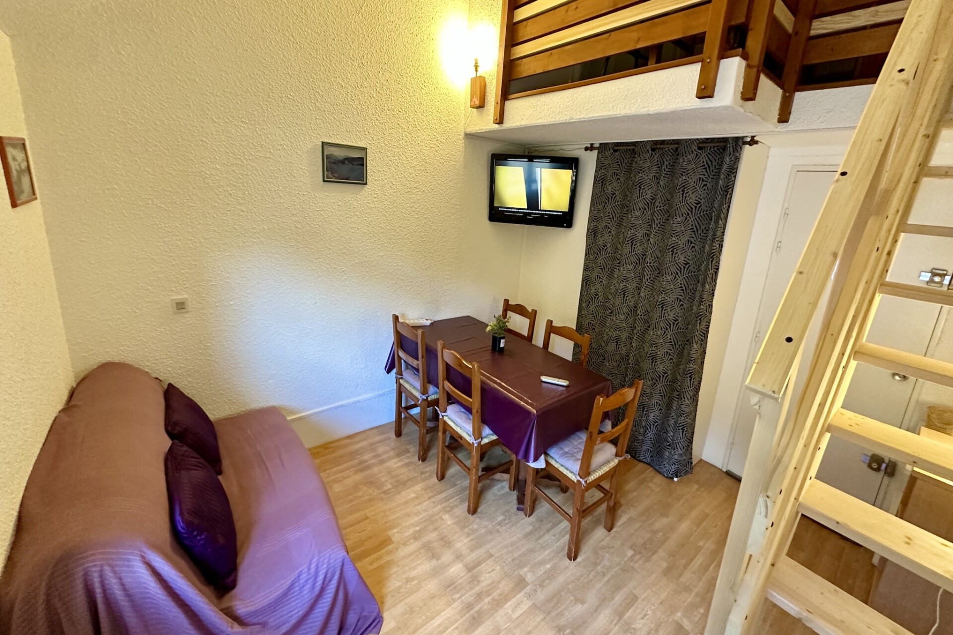 Het appartement is slim ontworpen en biedt plaats aan maximaal vijf gasten, verdeeld over twee comfortabele slaapkamers. De slaapgelegenheid bestaat uit een tweepersoonsbed, een stapelbed en een eenpersoonsbed, waardoor het een ideale keuze is voor gezinnen. Ondanks de authentieke bergsfeer is de woning uitgerust met moderne gemakken voor een zorgeloos verblijf, waaronder een volledig ingerichte keuken met vaatwasser, oven en magnetron. Na een dag de Sancy-bergketen te hebben verkend, kunt u zich opwarmen met de elektrische verwarming, naar de radio luisteren of genieten van het prachtige uitzicht vanuit uw raam.