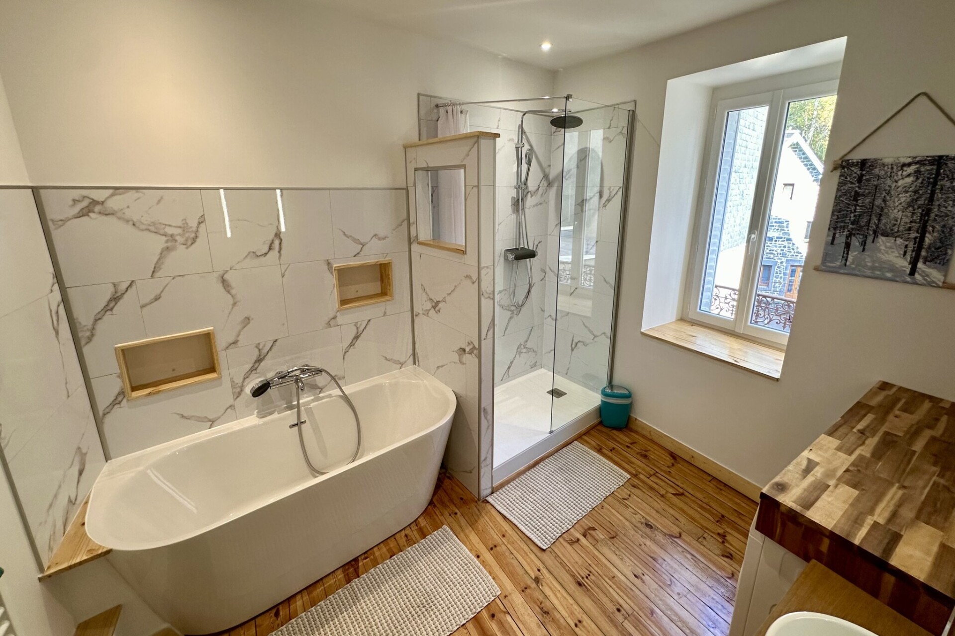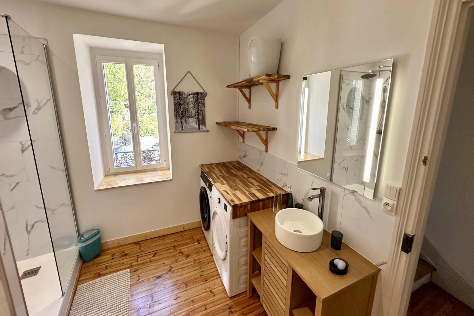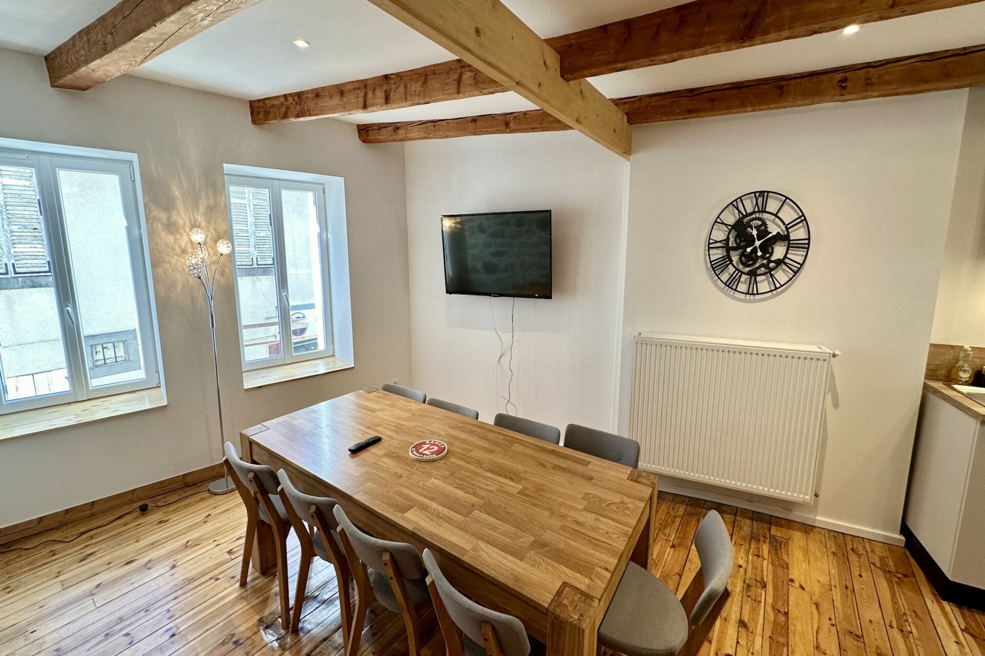 Het hoogtepunt van het huis is het enorme terras van 60 m², met een onbelemmerd uitzicht op de Sancy-bergen. Uitgerust met een barbecue en comfortabel tuinmeubilair, is het de ultieme plek voor een ontbijt in de zon of een feestelijk diner. Binnen maakt de moderne open keuken met inductiekookplaat en vaatwasser het bereiden van maaltijden voor een grote groep een fluitje van een cent. Moderne voorzieningen zijn van alle gemakken voorzien, zoals snelle wifi, twee televisies, een wasmachine en een droger, voor een praktisch en stressvrij verblijf.