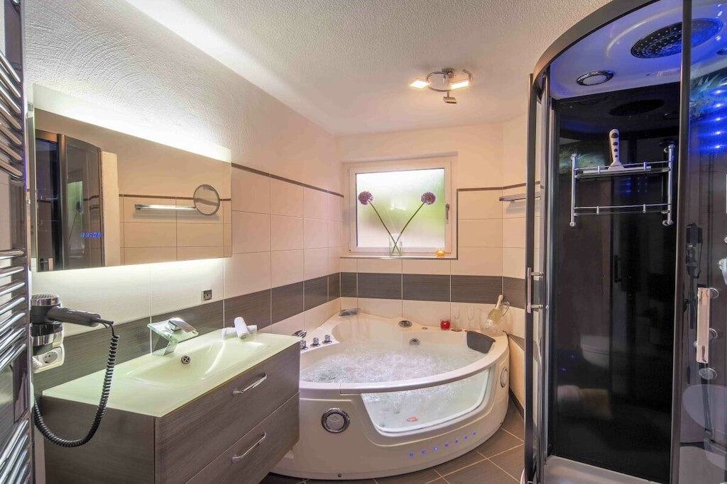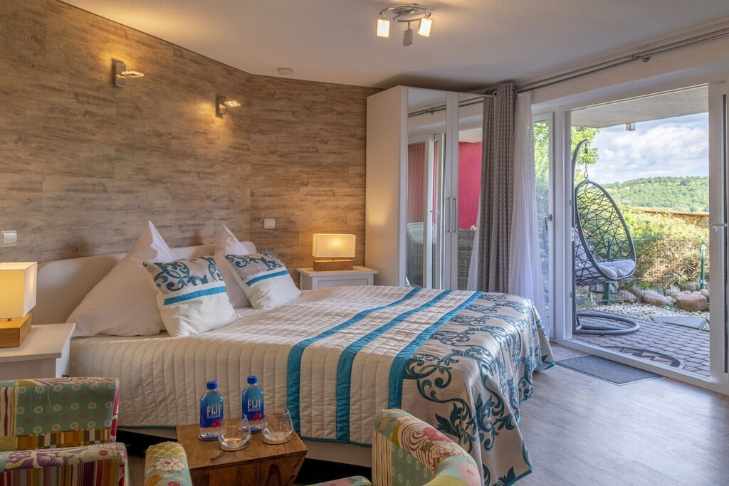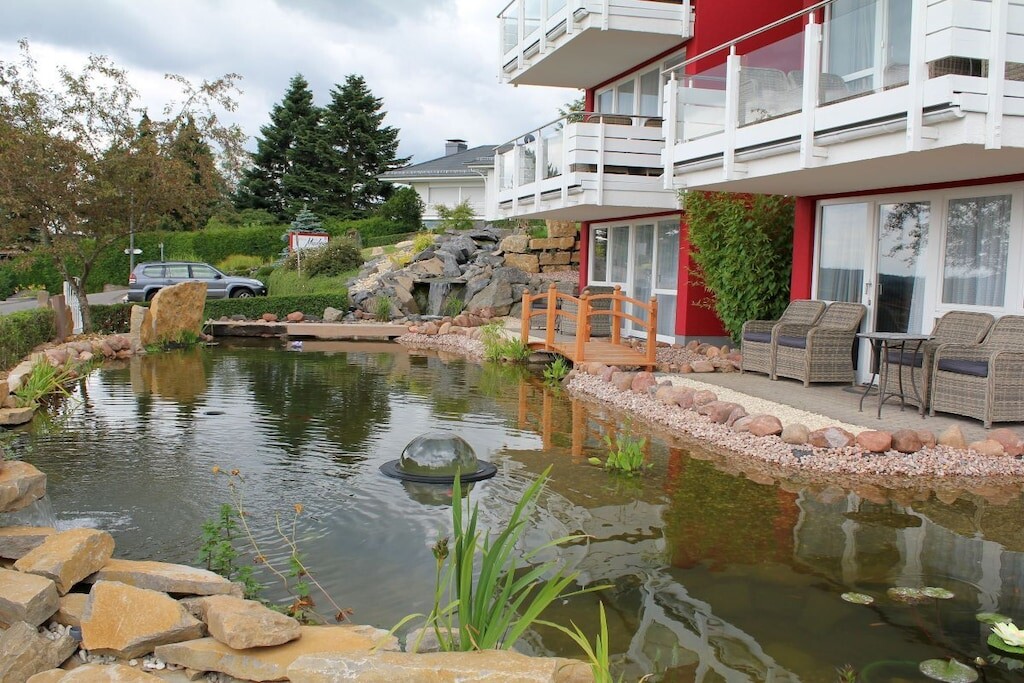 Elegant vakantieappartement “Studio Vulkanpanorama” gelegen in het appartementencomplex “Maarberg Resort”. Met prachtig uitzicht op het meer, jacuzzi en stoomdouche. Sauna in huis.