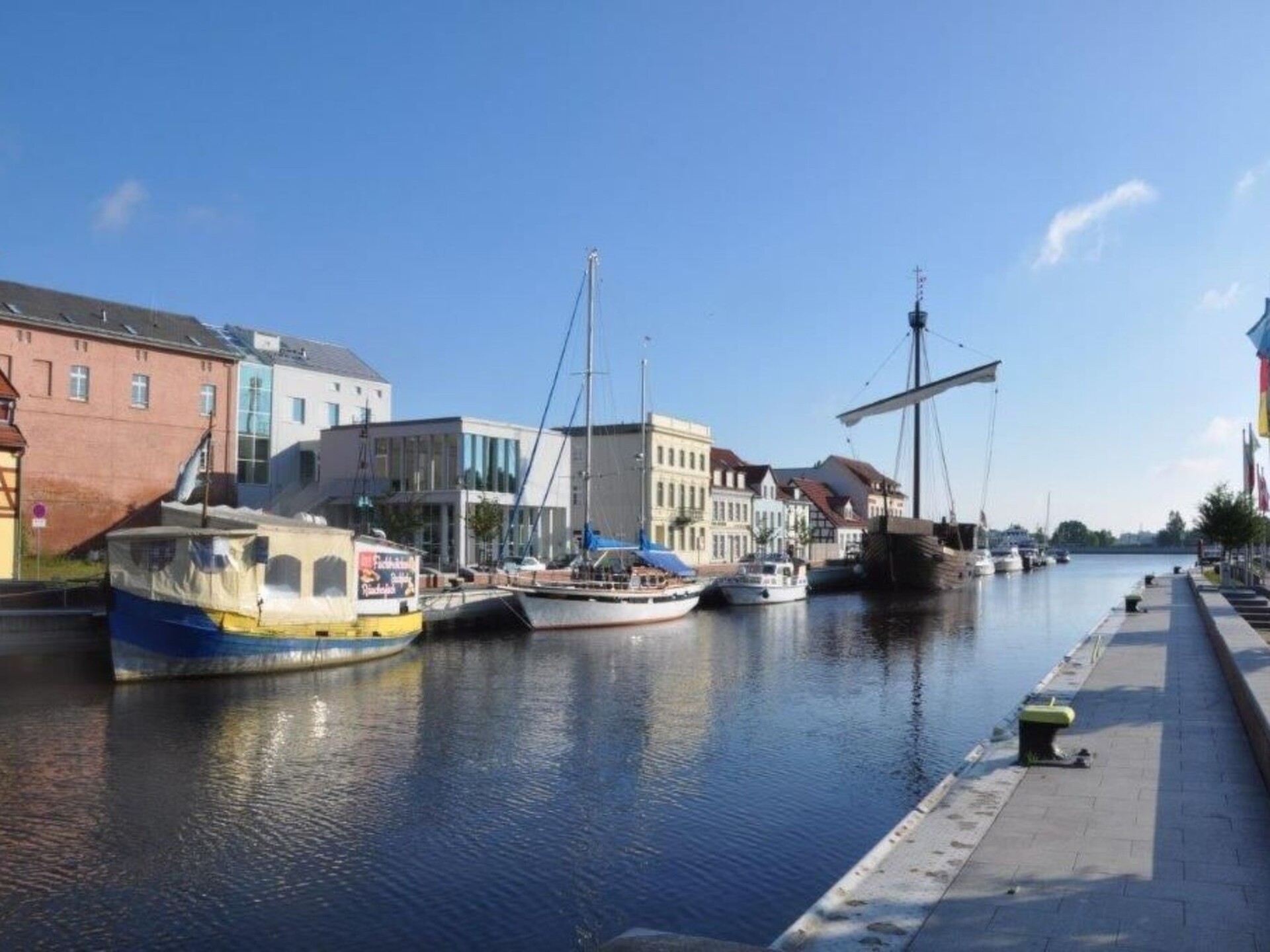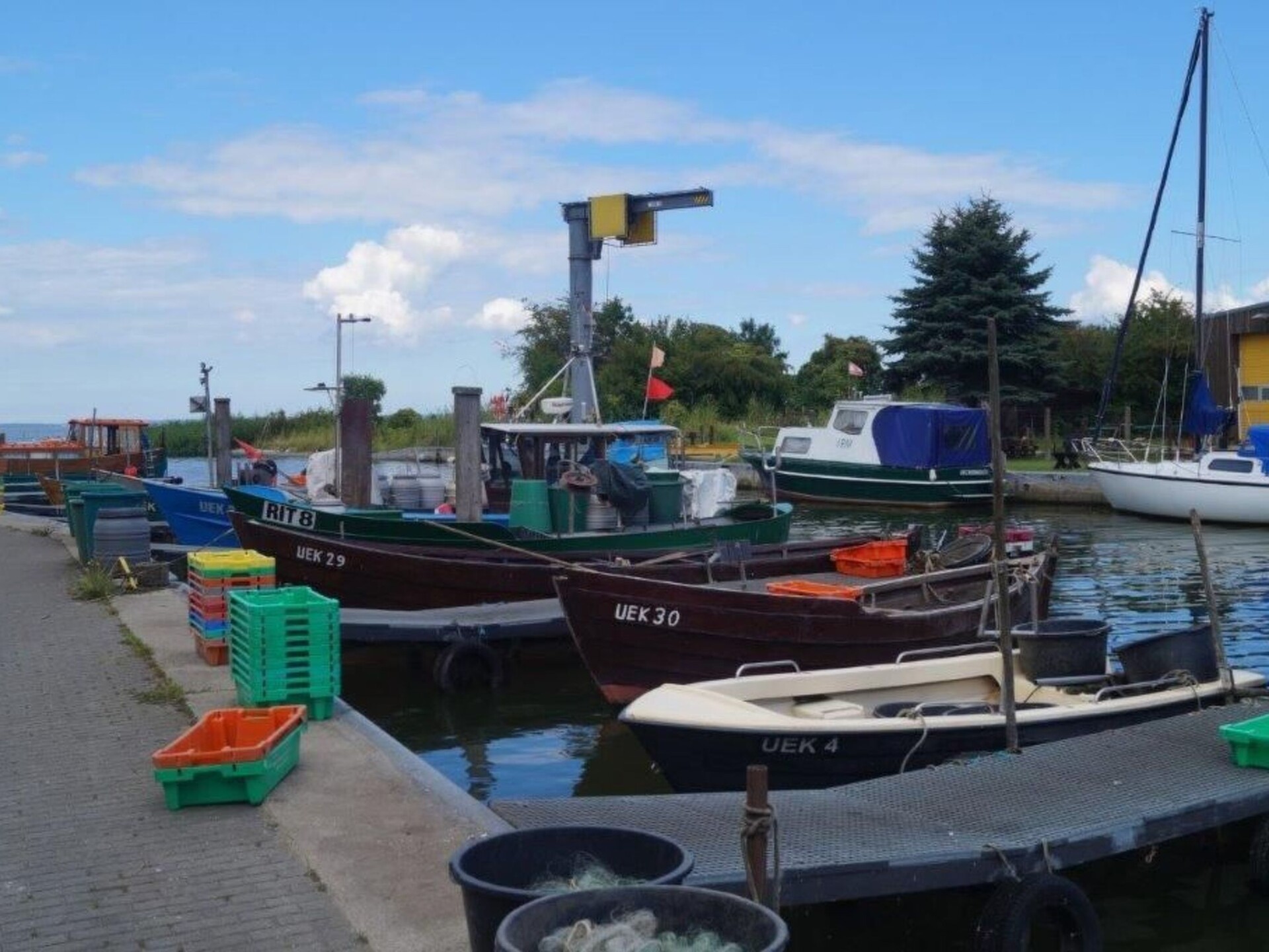 Welcome to our charming holiday accommodation, which is ideal for up to four people. Enjoy our idyllic location in the marina of Ueckermünde and just a stone's throw from the sea/Stettiner Haff. Make our holiday home your temporary home, where relaxation and adventure on the water go hand in hand.Inside, you will find a large living/sleeping area with a comfortable sofa bed, an LCD TV and a dining area that invites you to linger. Next to it is a bedroom with a comfortable 180 cm wide double bed that invites you to dream after a day of exploring with a direct view of the water from your bed. The kitchen is fully equipped, from a coffee machine and kettle to a practical counter. Wi-Fi is also available throughout the flat, so you can always stay connected.The outdoor area invites you to relax with a terrace and offers a peaceful oasis where you can enjoy the sun or unwind with a cool drink. A shower is also available to freshen up after a day at the beach.The charming surroundings of our holiday accommodation offer everything you need for a successful holiday. The water and the beach are only 200 metres away, perfect for those who love water sports or simply want to enjoy the idyllic view. A bistro with baked goods and breakfast service is located in the holiday complex, so you can organise your catering without much effort. The neighbourhood is perfect for those who love being close to the water but don't want to miss out on the comforts of everyday life.Don't miss out on the opportunity to experience an unforgettable holiday in our holiday accommodation. Here, where comfort meets idyllic location, you can find peace and quiet and leave the stress of everyday life behind you. Whether you want to spend relaxing days on the sun terrace, take advantage of the proximity to the beach or plan a trip to Usedom - our holiday home offers the perfect base for all your activities. We look forward to welcoming you as our guests soon!