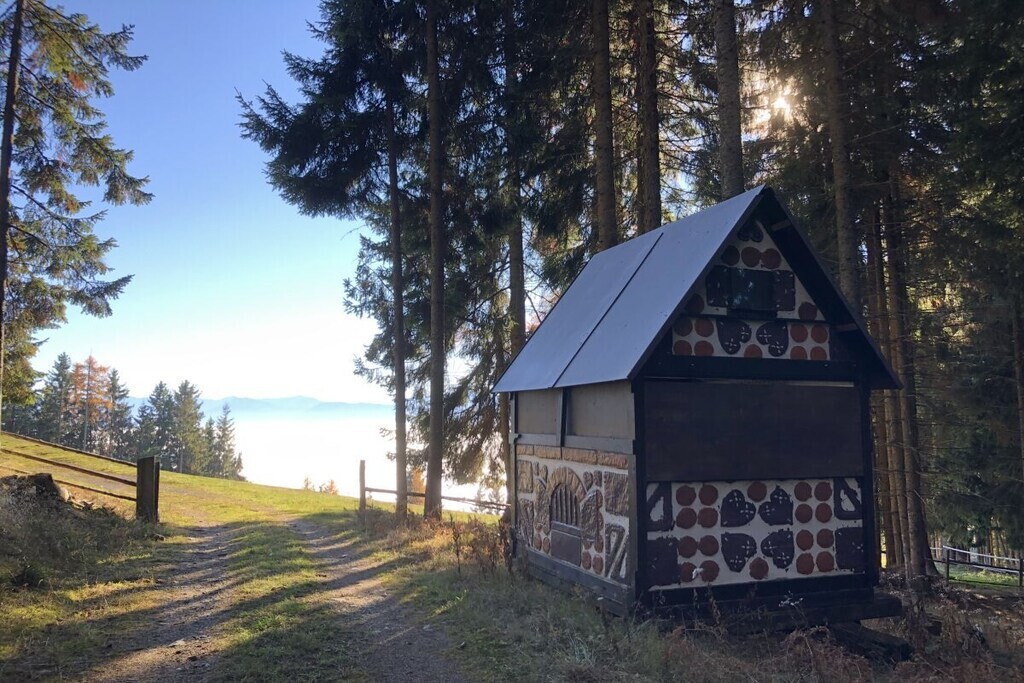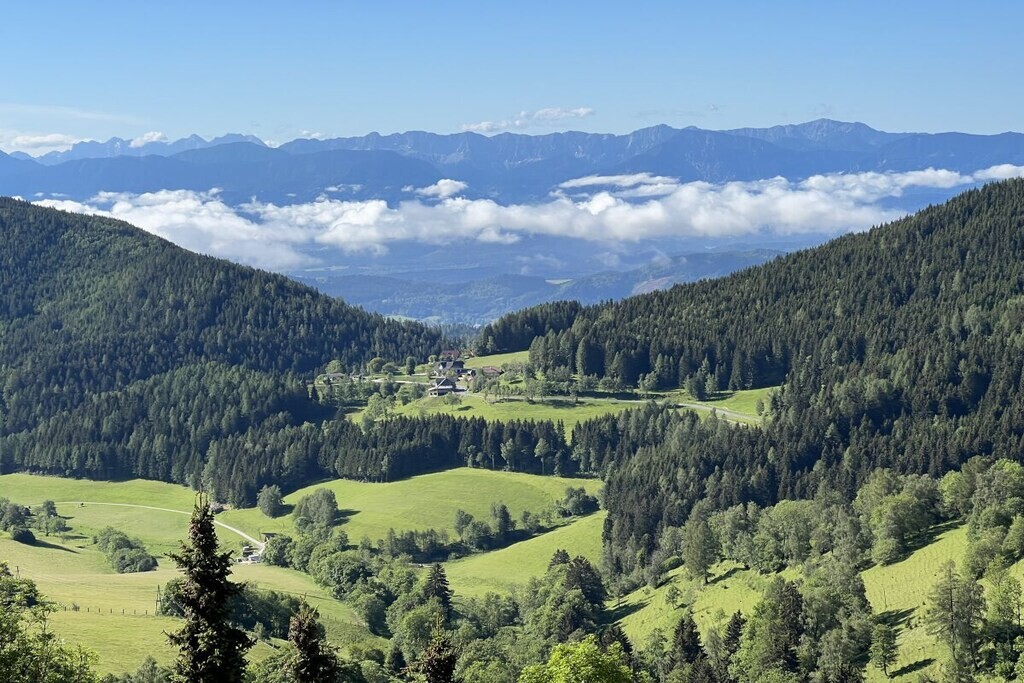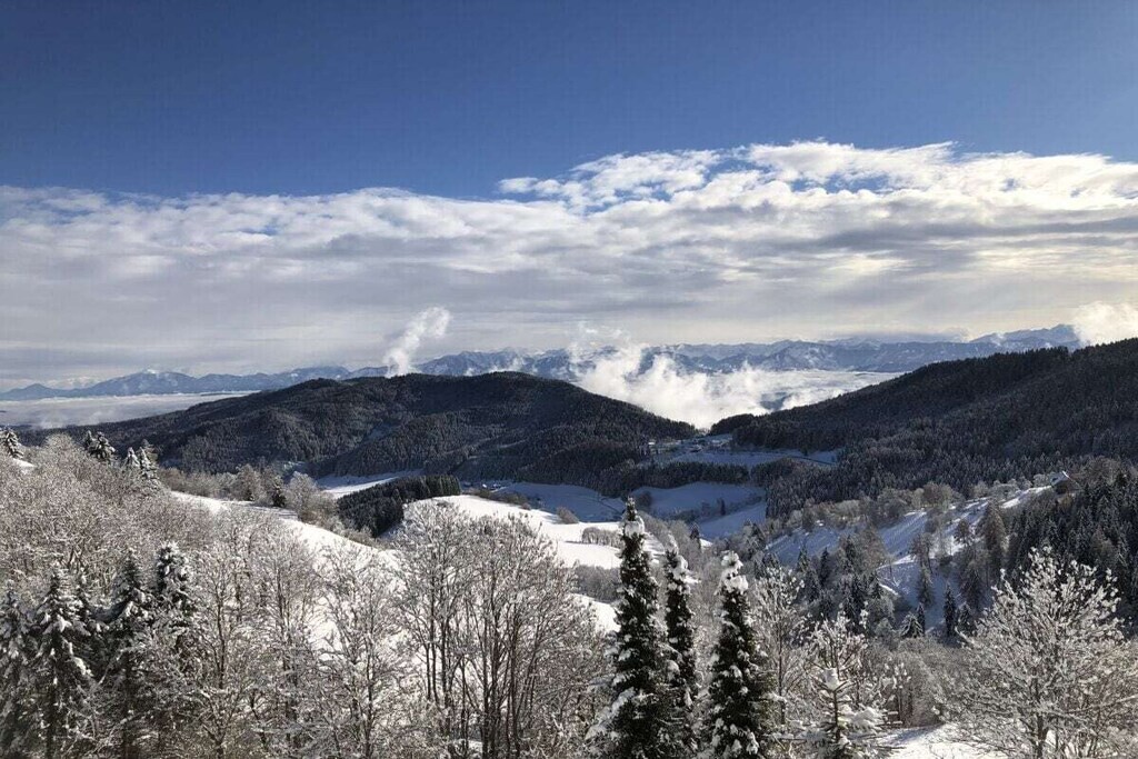 Het vakantiehuis ligt op 1200 meter boven zeeniveau, omgeven door weelderige bossen en op een zonnige helling, met een prachtig panoramisch uitzicht op de omliggende bergketens.