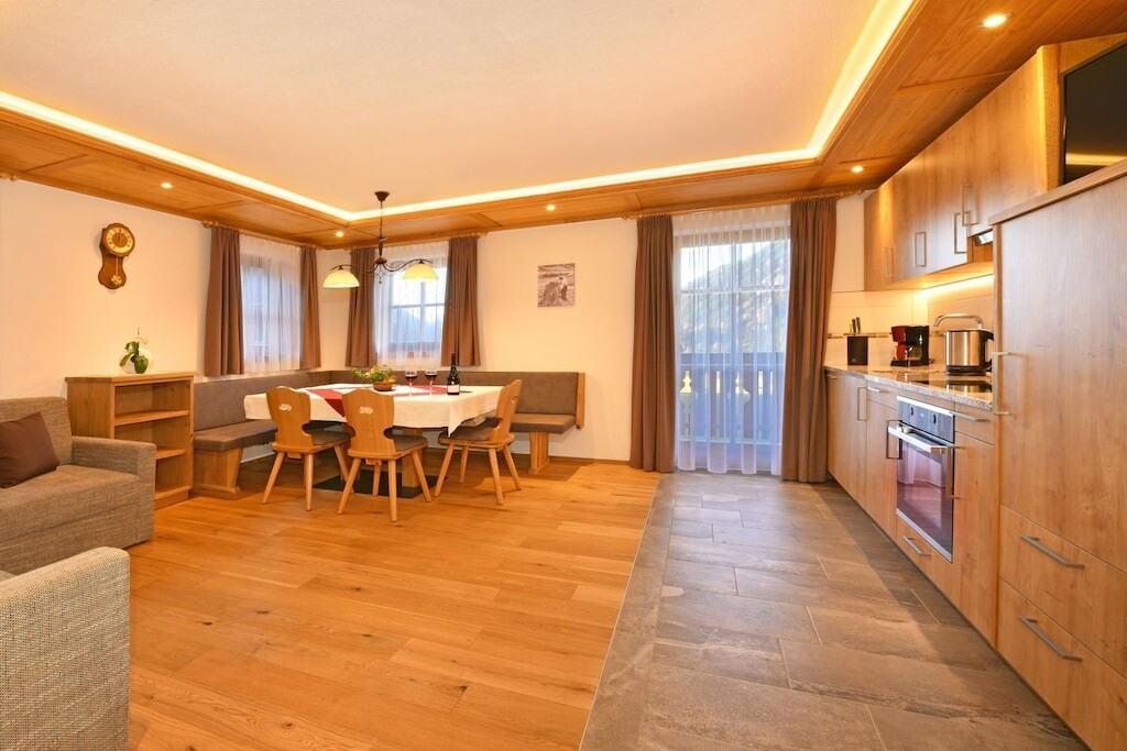 Sinds de renovatie in 2014 en de heropening in februari 2015 is het vakantieappartement ingericht met veel hout en natuurlijke materialen. Een perfecte mix van traditionele architectuur en modern comfort, het straalt warmte en gezelligheid uit.