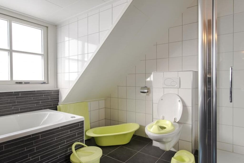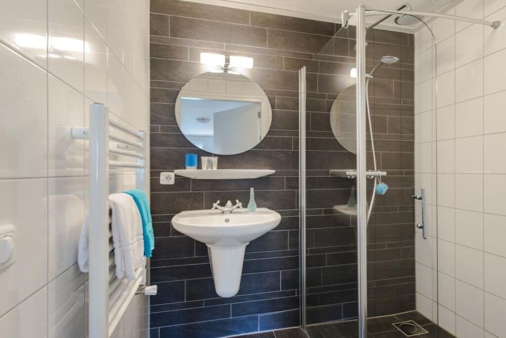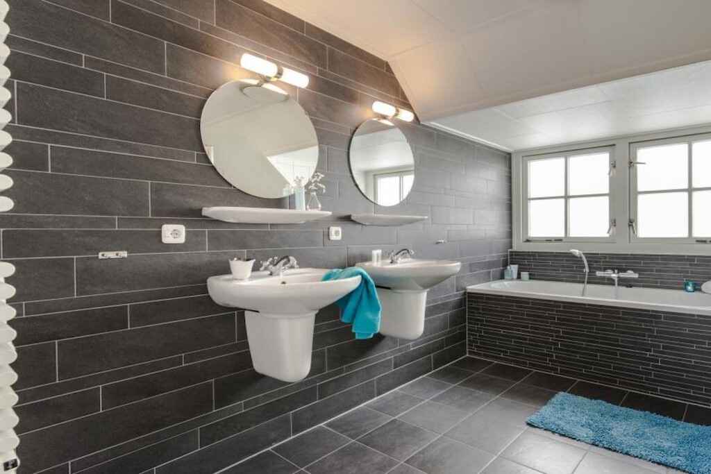 De twee betegelde badkamers hebben elk een douche, toilet en wastafel. De badkamer op de eerste verdieping heeft een bijzonder hoogtepunt: een bubbelbad! Geniet van uw vakantie en ontspan.