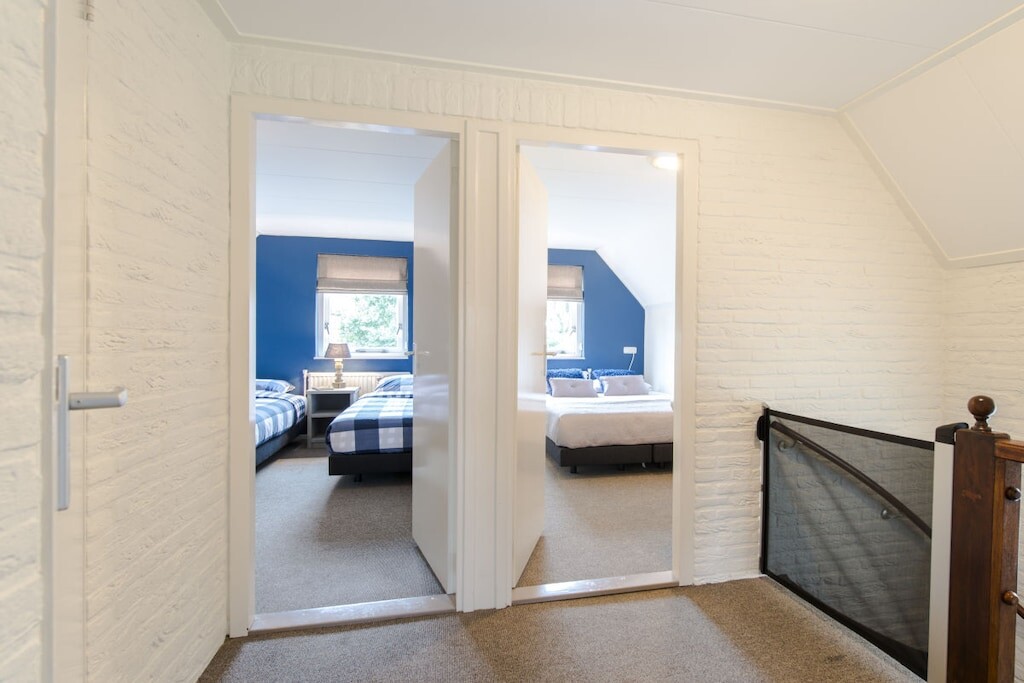 Boven bevinden zich drie slaapkamers, één met een tweepersoons boxspringbed en de andere met een eenpersoons boxspringbed. De derde is de luxe Vuurtorenkamer met sterrenhemel, voorzien van drie boxspringbedden. In deze kamer bevindt zich ook de tweede badkamer met whirlpool, douche, wastafel en toilet.