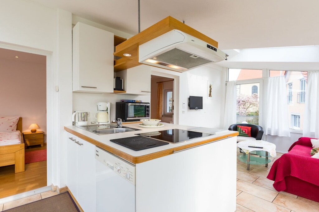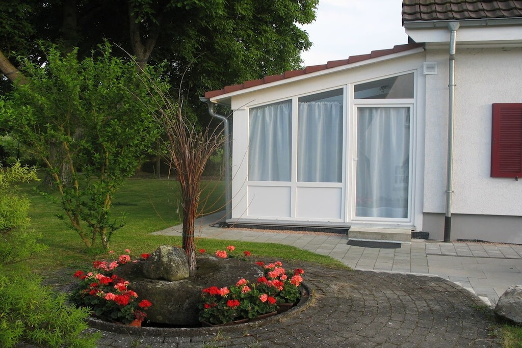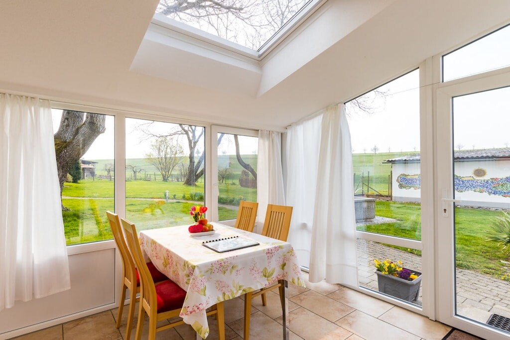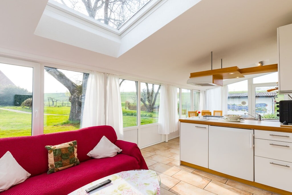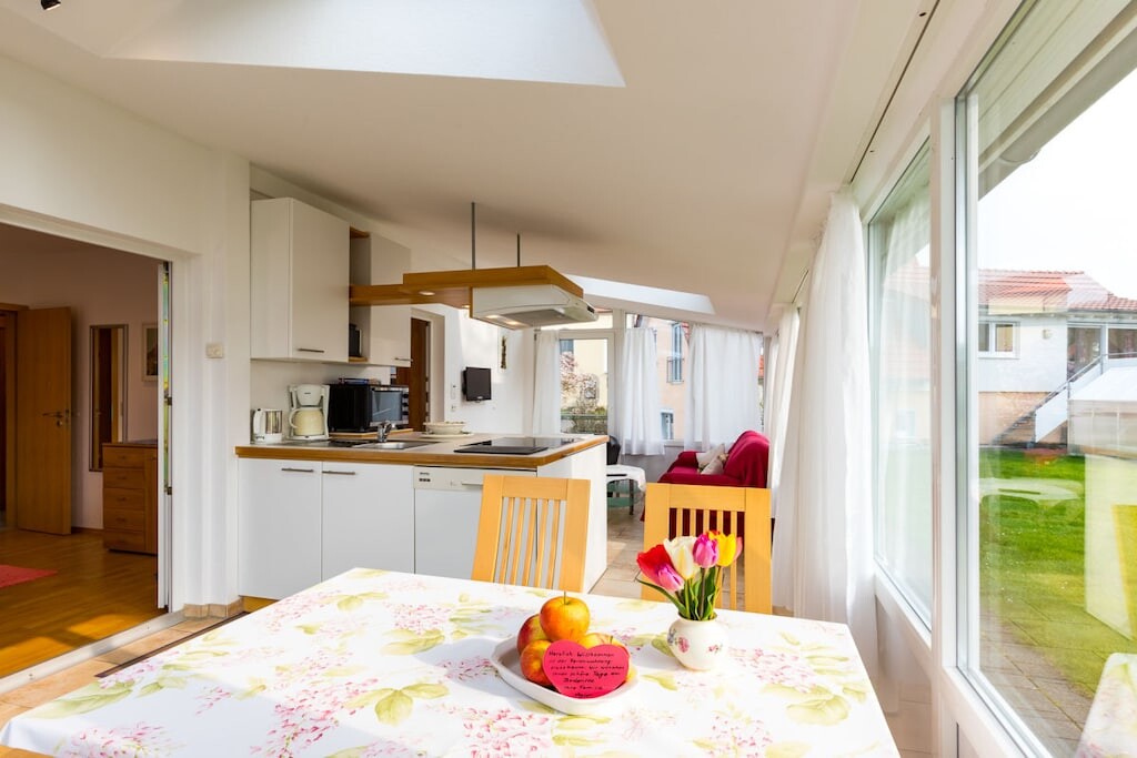 Modern, licht vakantieappartement met wintertuin met 2 slaapkamers, grote tuin en terras