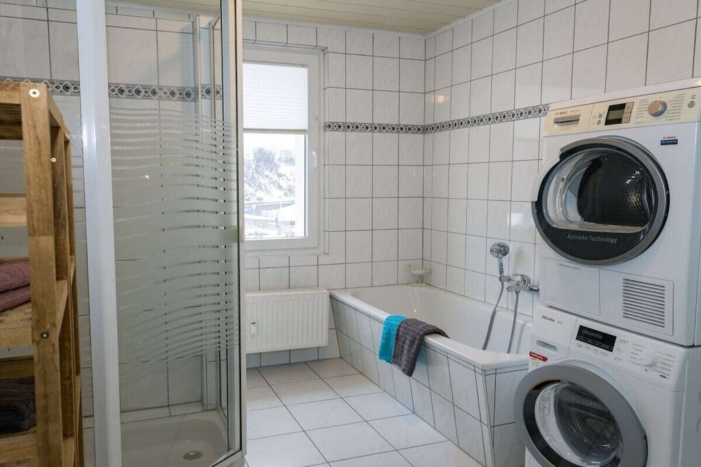 Verdeeld over twee verdiepingen met een woonoppervlakte van meer dan 310 m², bevinden zich 8 slaapkamers (zie hieronder voor de bedindeling), 3 ruime badkamers, alle met bad en douche, en een eigen infraroodcabine die exclusief beschikbaar is voor gasten van dit appartement. De liefdevol ingerichte woonkamers en de technische apparatuur (wifi) staan garant voor een ontspannen en rustgevend verblijf. De keuken biedt alle comfort van thuis, inclusief een vaatwasser, fornuis, oven, magnetron, inductiekookplaat, koel-vriescombinatie en ruim voldoende servies en servies. De aangrenzende kleine wintertuin nodigt u uit om te ontspannen met een kopje koffie of thee.