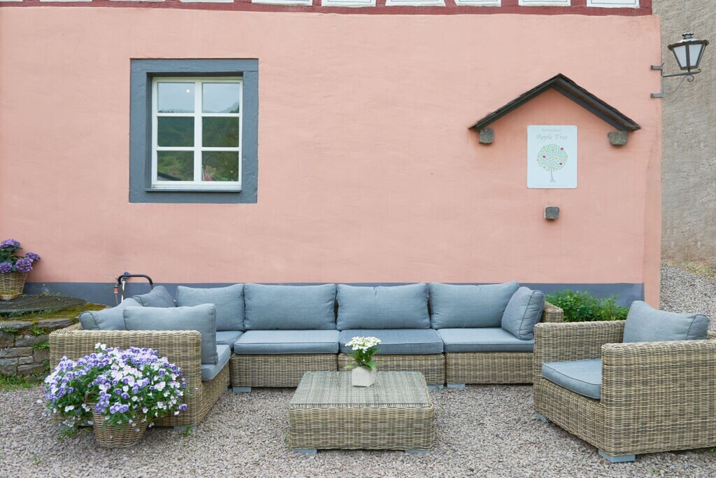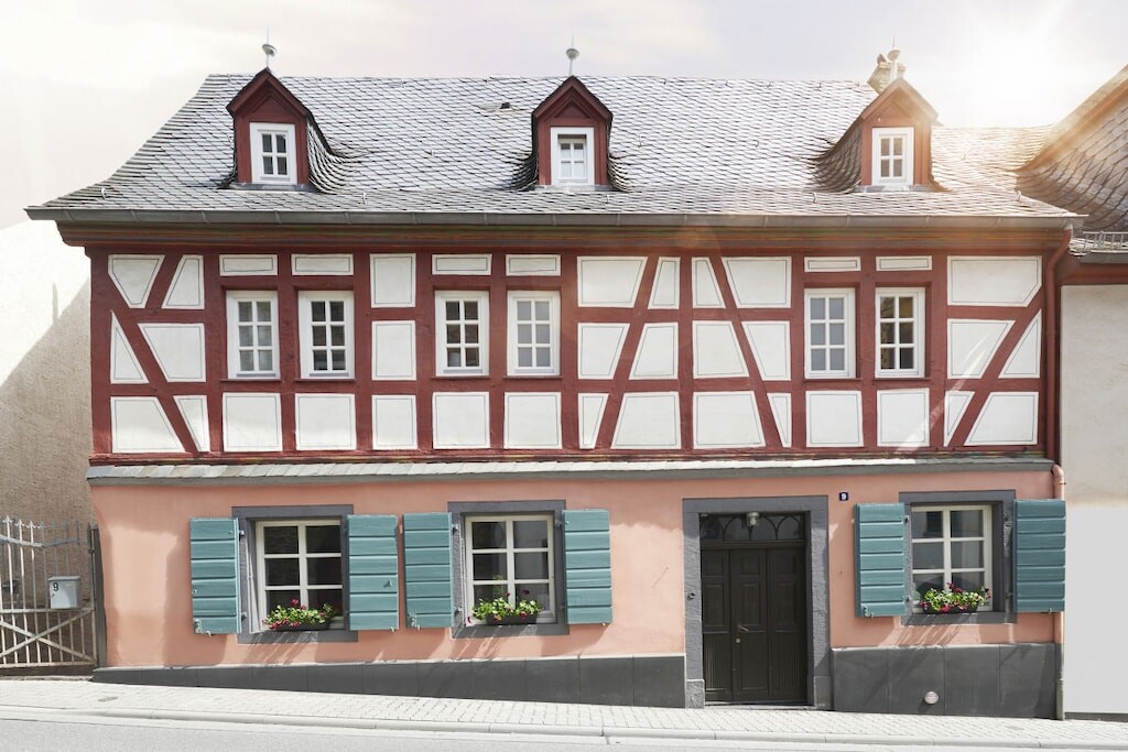 Dit vakwerkhuis met een woonoppervlakte van 220 m² werd gebouwd in 1750, op een steenworp afstand van de Moezel.