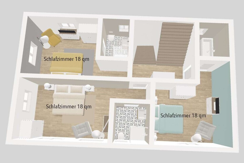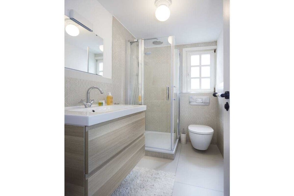 Nog drie slaapkamers op de tweede verdieping beschikken over een eigen badkamer met raam.
