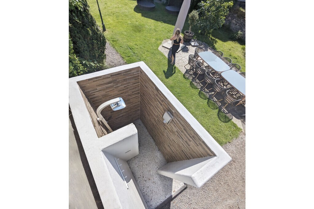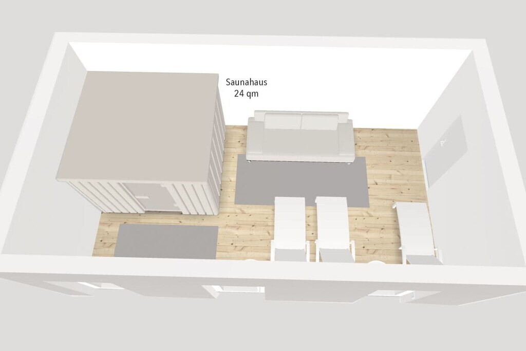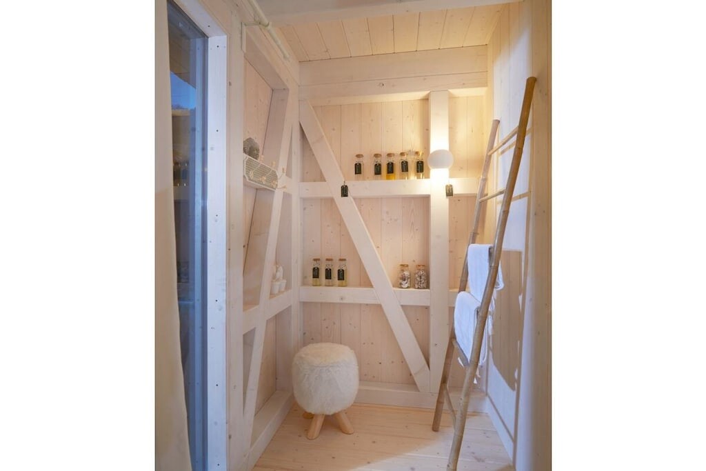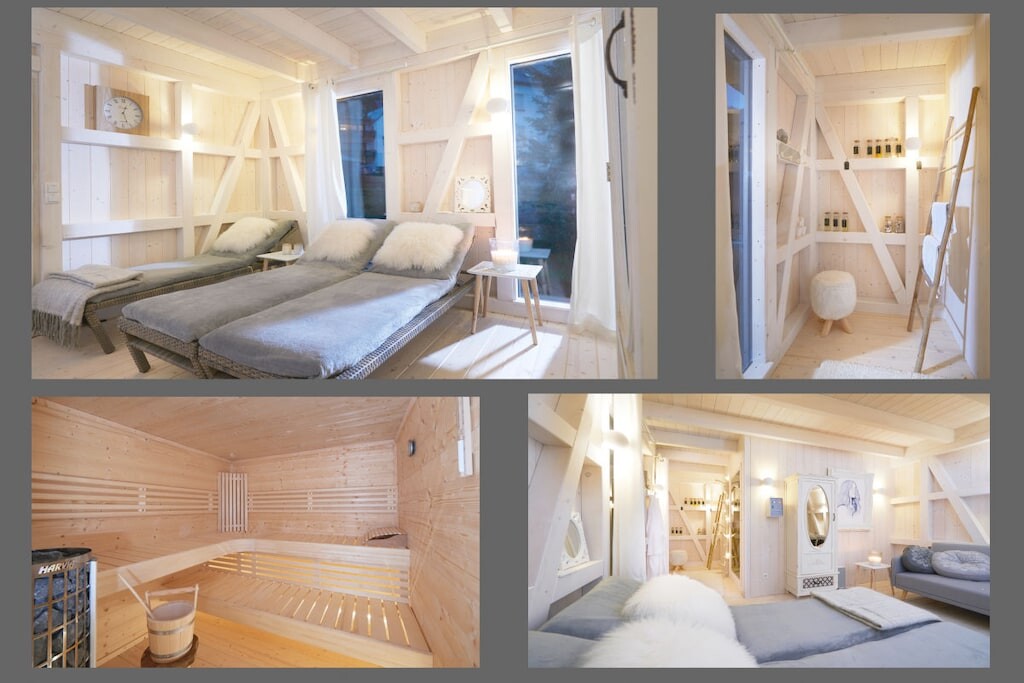 Een groot saunahuis met een sauna/relaxruimte van 24 m² staat exclusief tot uw beschikking.