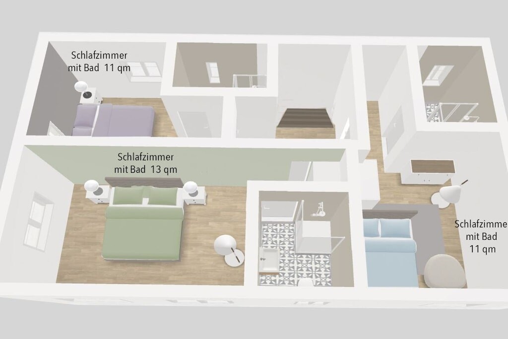 Het huis heeft de hoogste beoordeling van 5 sterren gekregen van de Duitse Vereniging voor Toerisme. Elk van de drie slaapkamers op de eerste verdieping beschikt over een eigen nieuwe badkamer met raam, een boxspringbed en een 40-inch flatscreen-tv.