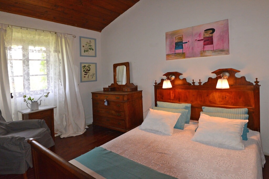 Romantisch vakantiehuis met 3 slaapkamers, een grote tuin en veel ruimte voor een ontspannen vakantie aan het meer. Mooi terras met uitzicht op het meer en barbecue. Privézwemgedeelte met waterval.