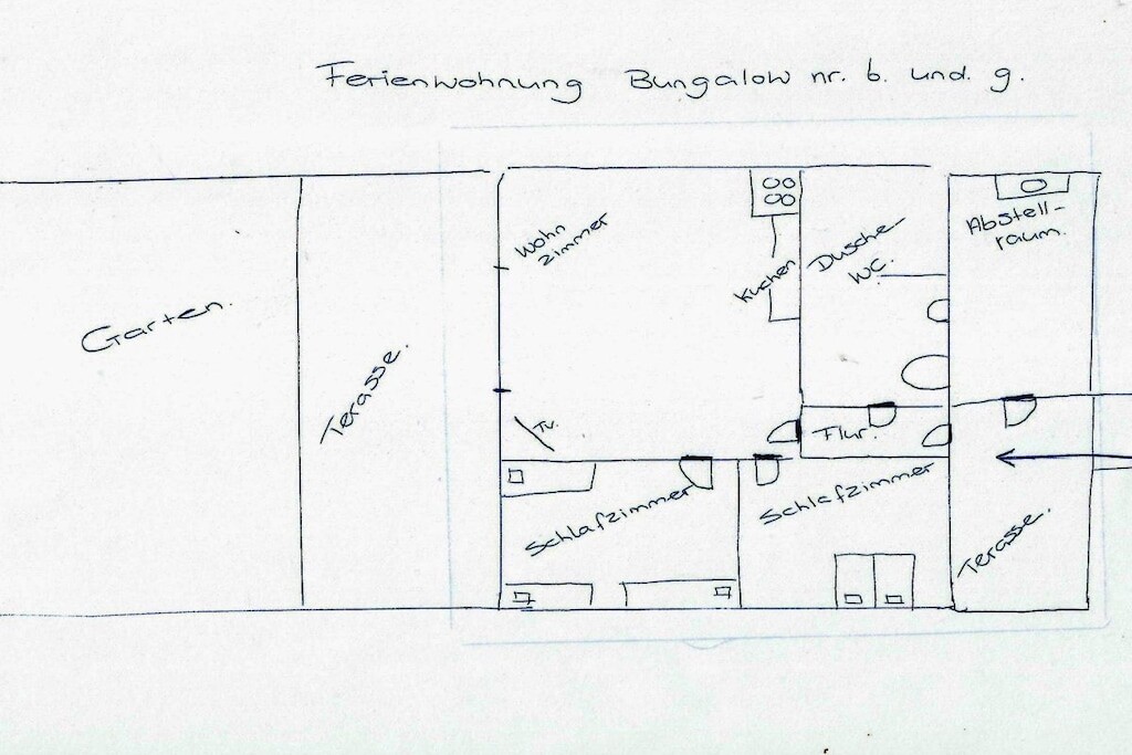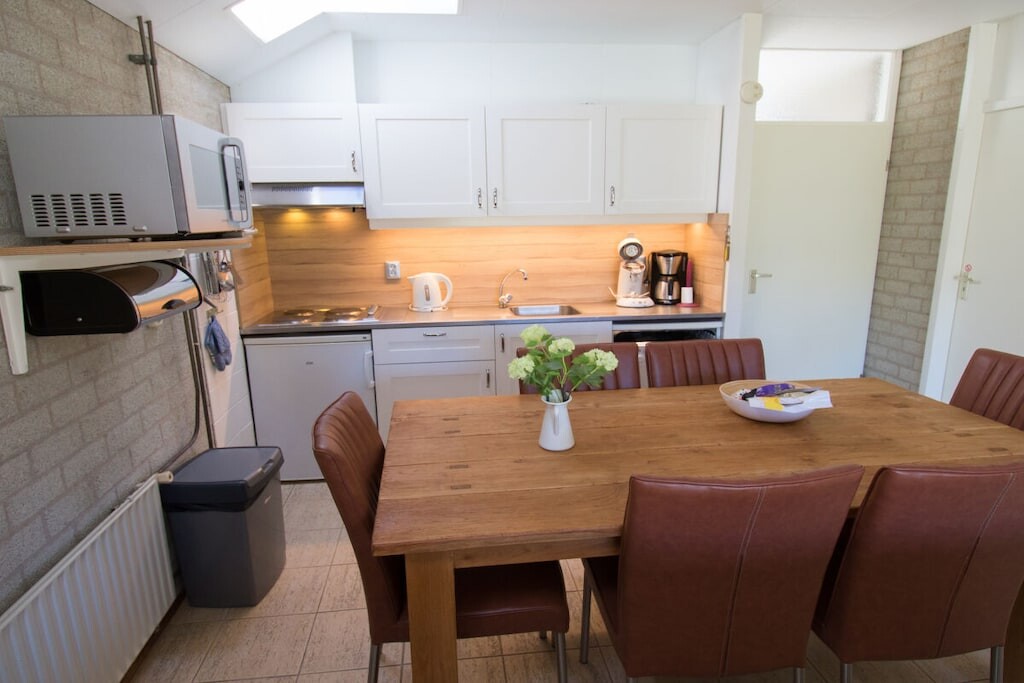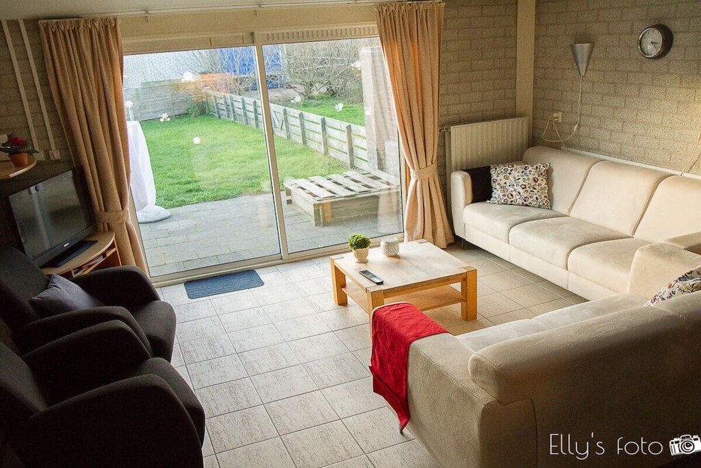 Indeling: Hal, douche met toilet, ruime woonkamer met open keuken en schuifdeuren naar het terras met tuinmeubilair, digitale tv, vaatwasser, centrale verwarming, radio/cd-speler, broodrooster, stofzuiger, oven...