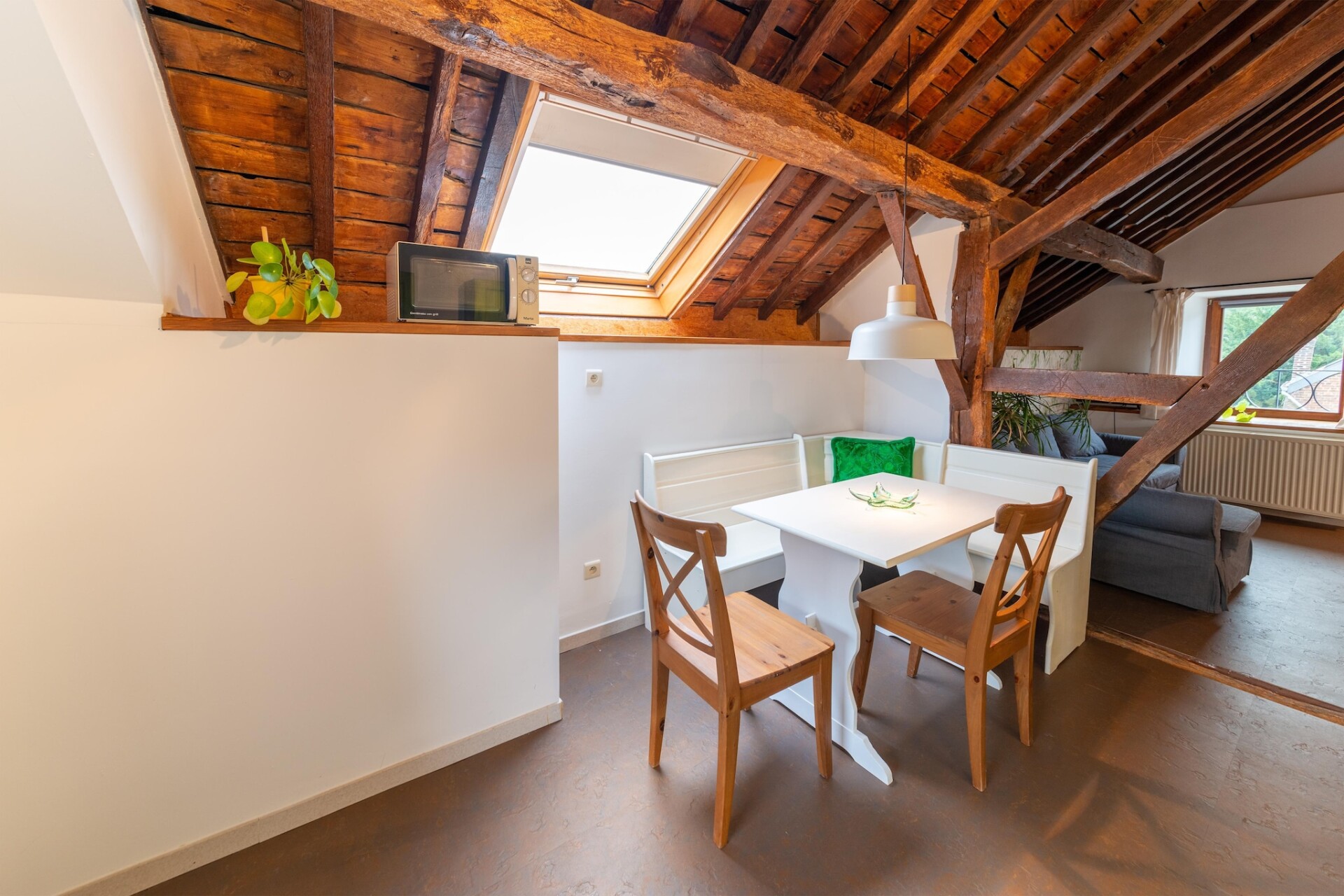 Dit gezellige appartement in loftstijl in Esneux biedt een oase van rust op slechts een steenworp afstand van de Ourthe en de omliggende bospaden. Gelegen op de tweede verdieping, is het ideaal voor stellen of kleine gezinnen die op zoek zijn naar natuur en ontspanning. Nabijgelegen bezienswaardigheden zijn onder andere de Grotten van Comblain, het Centre de la Chauve-Souris en het dierenpark Monde Sauvage d'Aywaille. Voor daguitstapjes kunt u het charmante stadje Durbuy verkennen of ontspannen in de thermenstad Spa. Het appartement beschikt over een lichte woonkamer met een tweepersoonsbed, een slaapbank en een tv, plus een volledig uitgeruste keuken met een oven, een koffiezetapparaat en een koel-vriescombinatie. Een galerijslaapkamer en een mezzanine bieden extra slaapruimte met twee eenpersoonsbedden. De badkamer is voorzien van een douche en een wastafel en er is een apart toilet. Gasten kunnen genieten van centrale verwarming, een fietsenstalling en toegang tot een gedeeld privézwembad - perfect voor een zomerverblijf. De culinaire scene van Esneux is al even uitnodigend. Geniet van verfijnde Belgische gerechten bij L'Olivier des Sens, proef Italiaanse smaken bij La Vita e Bella of geniet van de charme van de rivier bij Le Châtillon. Of u nu gaat wandelen, bezienswaardigheden bezoekt of ontspant aan het zwembad, deze loft is de perfecte uitvalsbasis voor uw avontuur in de Ardennen.