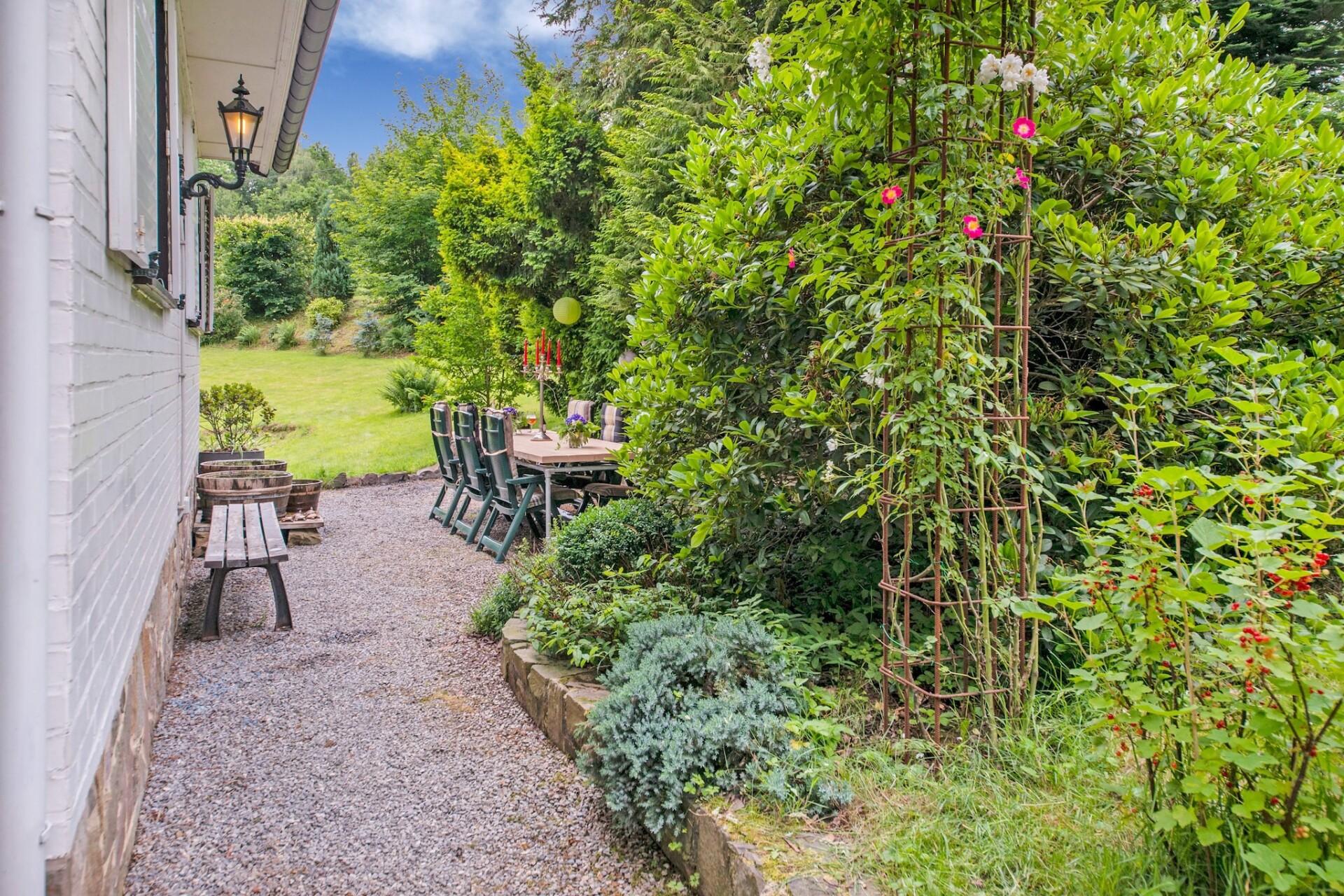 Het huis beschikt over een comfortabele woonkamer met een tweepersoonsslaapbank en tv, een eethoek en een goed uitgeruste keuken met oven, koffiezetapparaat en vaatwasser. Twee slaapkamers met tweepersoonsbedden en een badkamer met douche en wasmachine zorgen voor comfort. Een stapelbed biedt flexibiliteit voor gezinnen. Centrale verwarming houdt de ruimte gezellig, terwijl de privétuin, het terras, de barbecue en het tuinmeubilair uitnodigen tot ontspanning onder de Ardense hemel.