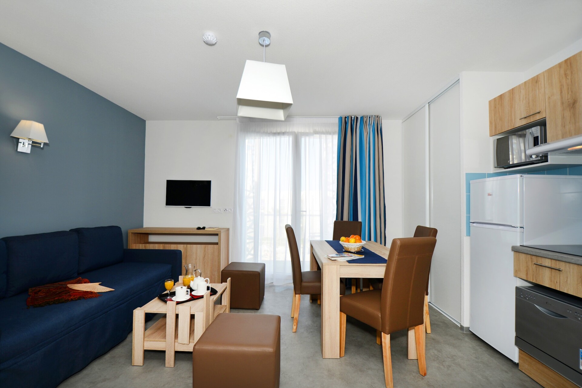 Verscholen in een serene, autovrije residentie in het hart van Cap d'Agde, biedt dit zorgvuldig ingerichte appartement alles wat u nodig heeft voor een ontspannen vakantie aan de kust. Binnen vindt u een stijlvolle woonkamer met een tweepersoons slaapbank, een volledig uitgeruste kitchenette (inclusief vaatwasser, magnetron en koffiezetapparaat) en een knusse slaapkamer met een tweepersoonsbed. De moderne badkamer, compleet met een haardroger, zorgt voor comfort, terwijl de airconditioning de ruimte koel houdt op warme mediterrane dagen. Stap naar buiten op uw eigen balkon of terras, perfect voor een kopje koffie in de ochtend of een wijntje bij zonsondergang.