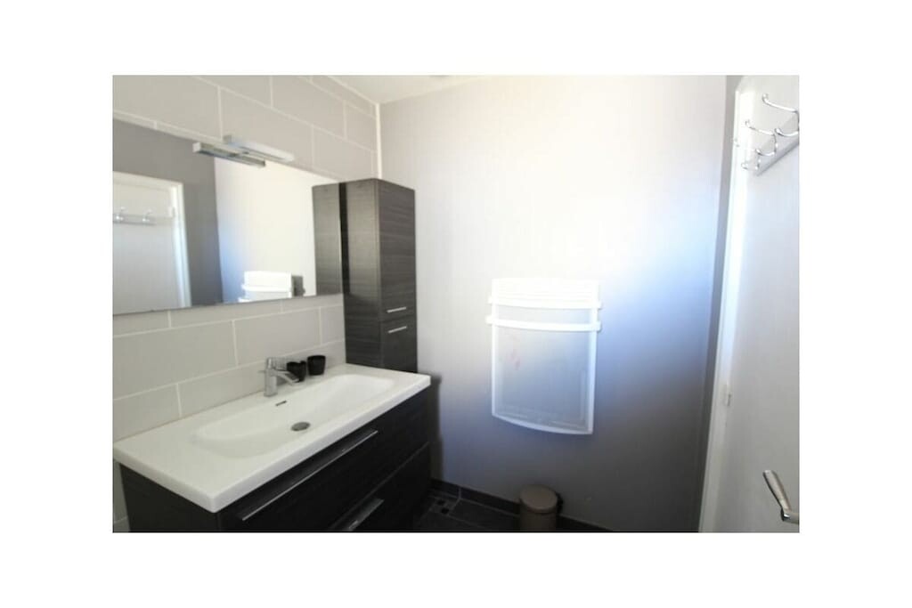 De badkamer is zeer licht en goed onderhouden en beschikt over een ligbad.