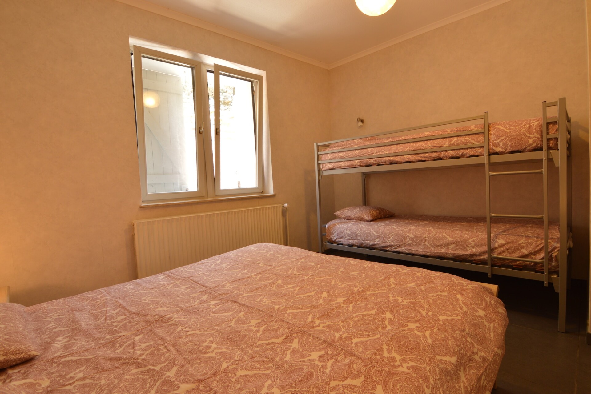Binnen combineert de woning rustieke charme met modern comfort: vloerverwarming, openslaande deuren, een gezellige eethoek en een volledig uitgeruste keuken met een vaatwasser, magnetron en koelkast. Een bijkeuken met een wasdroger en wasmachine, plus een badkamer met een bad, zorgen voor extra gemak. Gasten kunnen ook de stallen op het terrein verkennen, wat een landelijk tintje aan hun verblijf geeft.