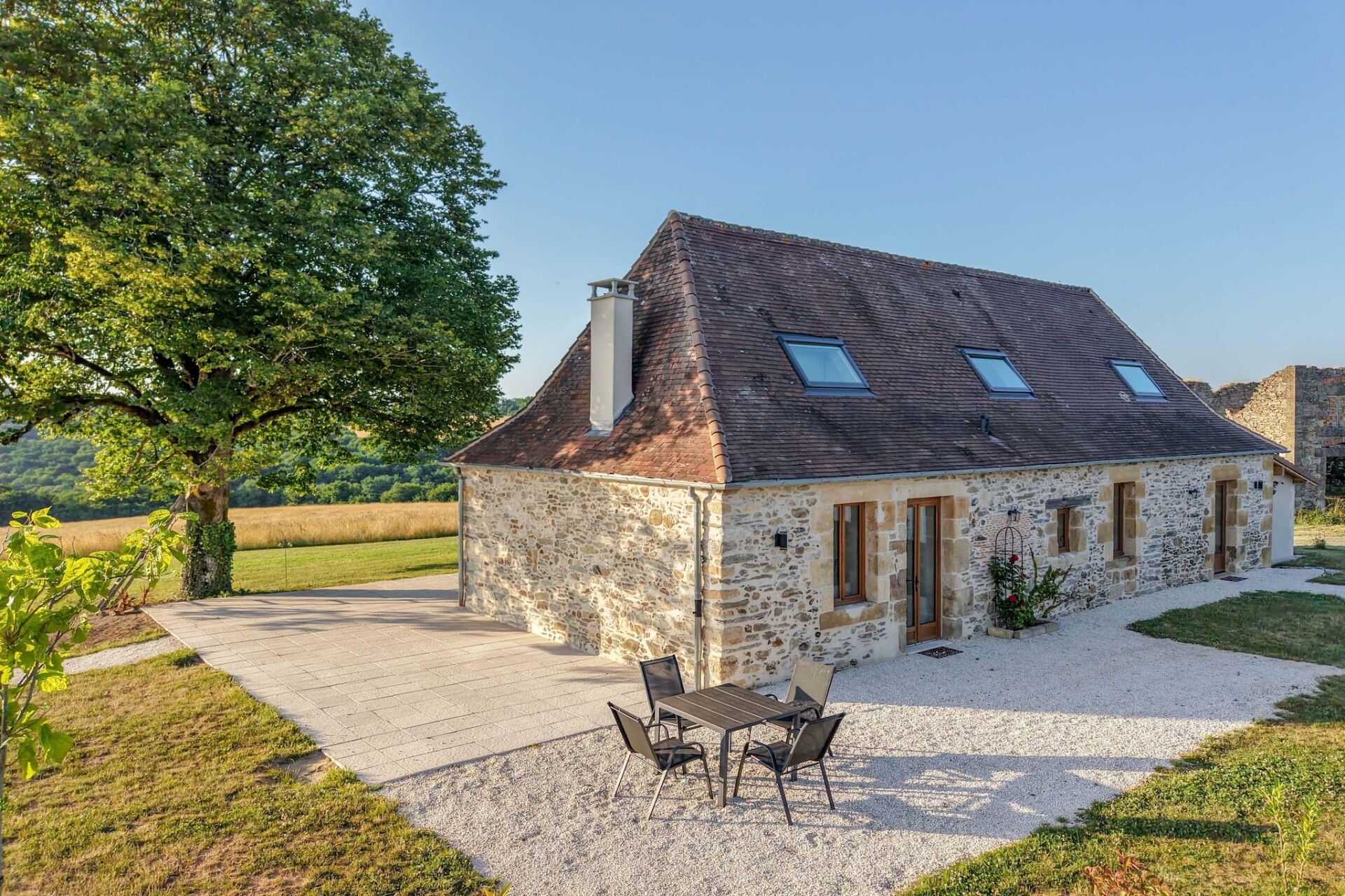 Gasten kunnen genieten van een breed scala aan voorzieningen op het terrein, waaronder een 9-holes golfbaan, een tennisbaan en prachtig aangelegde tuinen, perfect voor ontspannen wandelingen. Het landgoed ligt op een van de hoogste heuvels van de Dordogne en biedt een panoramisch uitzicht en een rijke historische achtergrond. Activiteiten in de buurt zijn onder andere grotten verkennen, raften en paardrijden door het schilderachtige landschap.