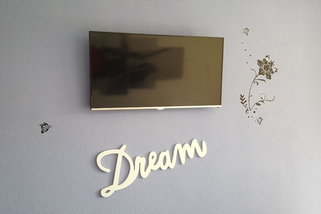 Bijzondere hoogtepunten zijn het boxspringbed en de gebogen tv.