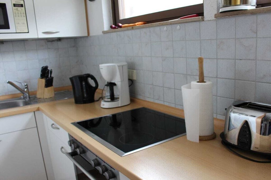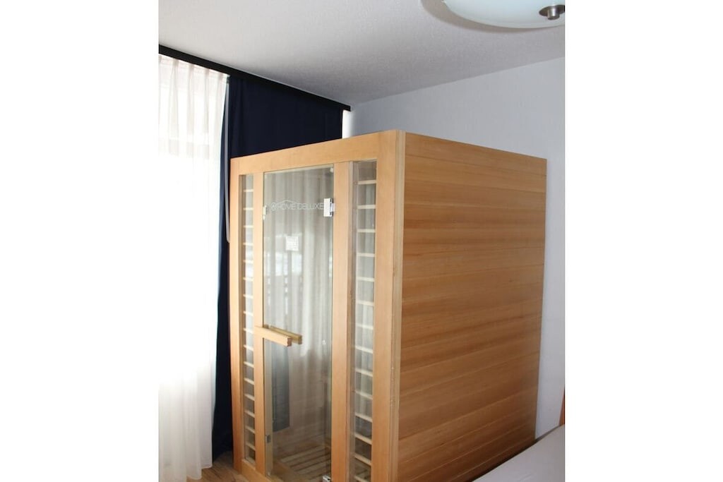 Dit ruime appartement beschikt over een volledig uitgeruste keuken met vaatwasser, magnetron, fornuis en oven, evenals alle benodigde keukengerei om uitgebreid te koken. Het beschikt ook over twee slaapkamers, een ruime woonkamer, een hal, een badkamer met douche, een sauna en een balkon.