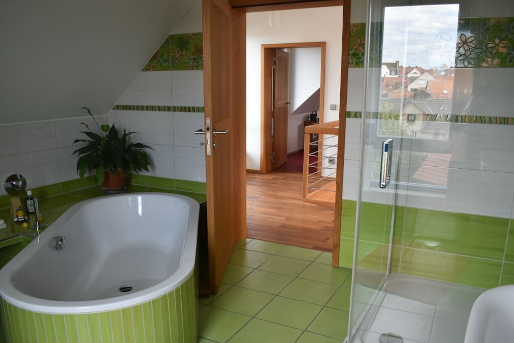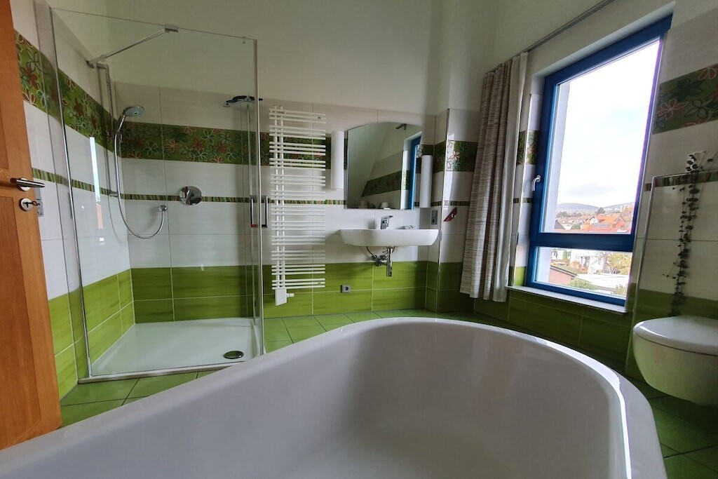 Ecologisch ingericht vakantieappartement in de sprookjesachtige wijk Niederzwehren in Kassel. Met een fantastisch uitzicht over het zuidelijke deel van de stad en het Habichtswald in.
