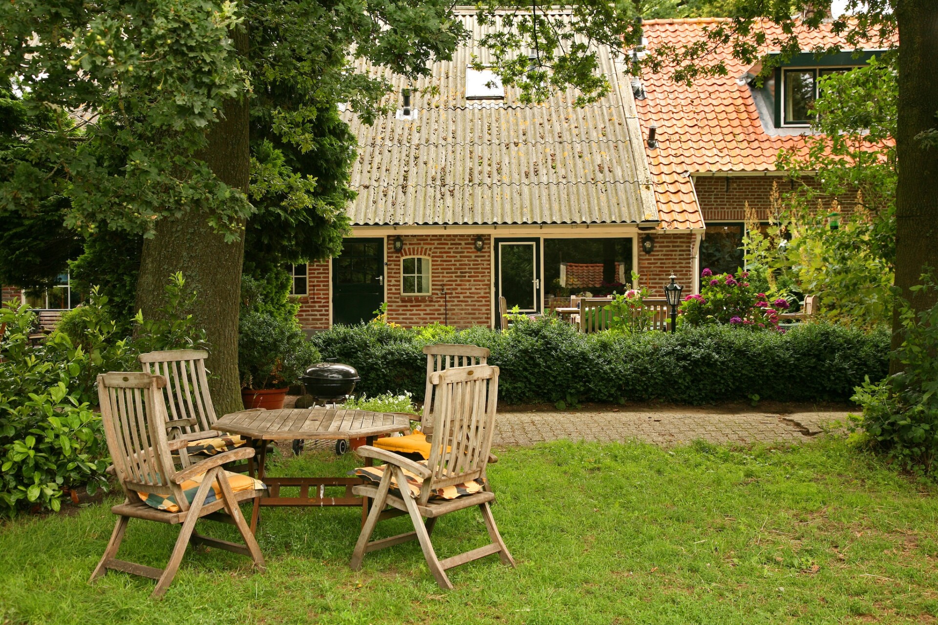 De eigenaar verblijft in de achterkant van de woonboerderij.