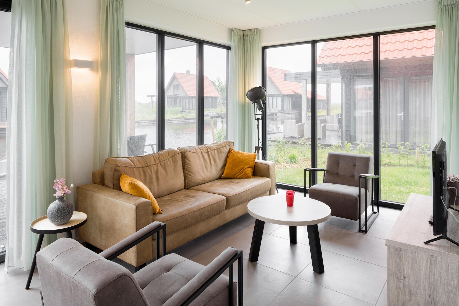 Word wakker met een rustgevend uitzicht op het water in deze moderne, vrijstaande villa's die zijn ontworpen voor comfort en ontspanning. Elke villa heeft een strak interieur, smart-tv's, een volledig uitgeruste keuken met vaatwasser en combimagnetron, en een ruime badkamer met inloopdouche. Geniet van het ontbijt op uw eigen terras of drink een glas wijn terwijl u kijkt naar de boten die langs uw eigen aanlegsteiger varen. De villa's bieden plaats aan 4, 6 of 8 gasten, allemaal met flexibele slaapkamerindelingen en parkeergelegenheid voor twee auto's op het terrein.